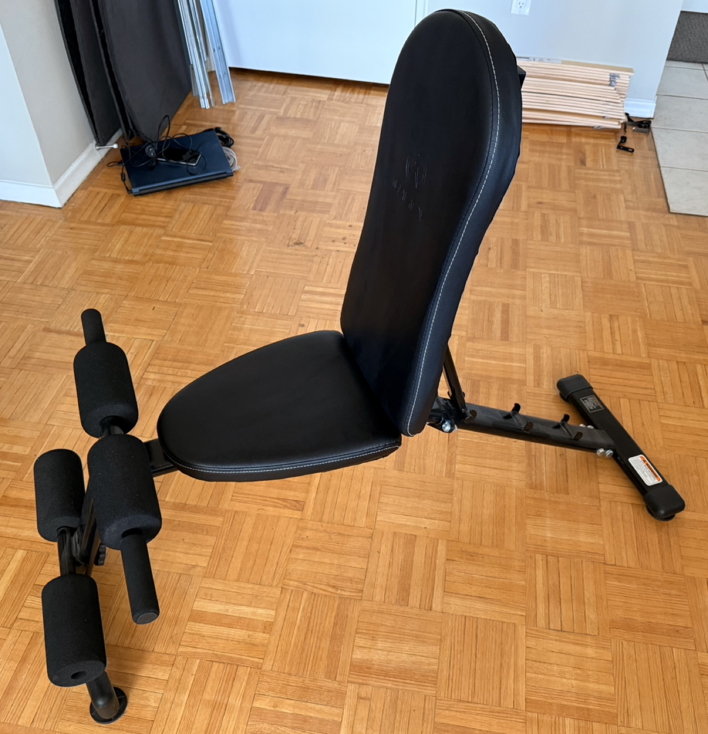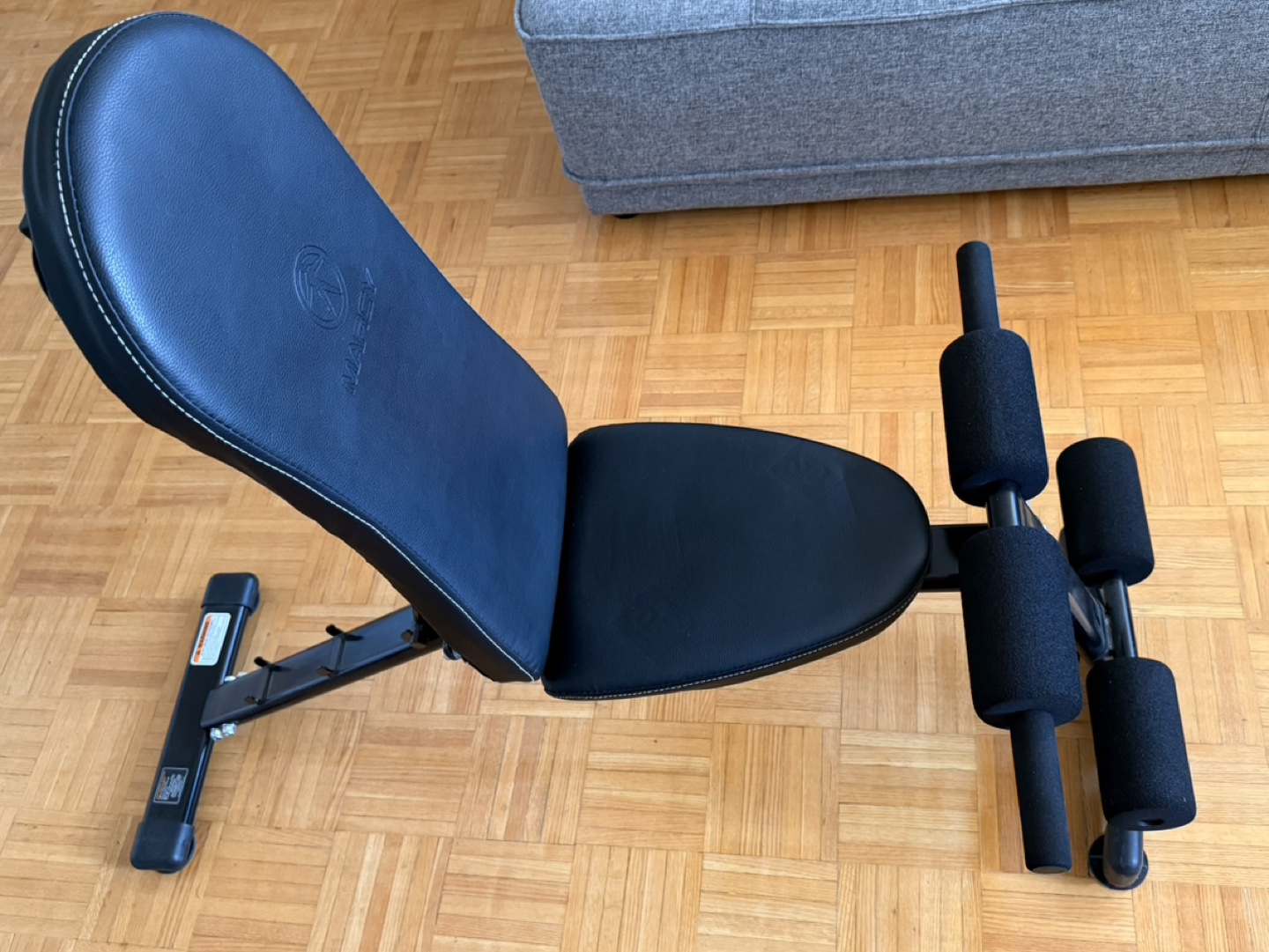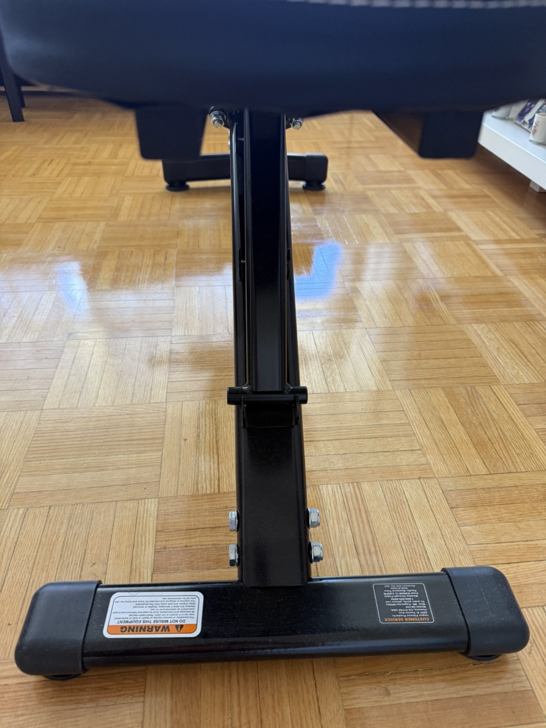Adjustable weight bench. Includes arm supports. Black vinyl padding.