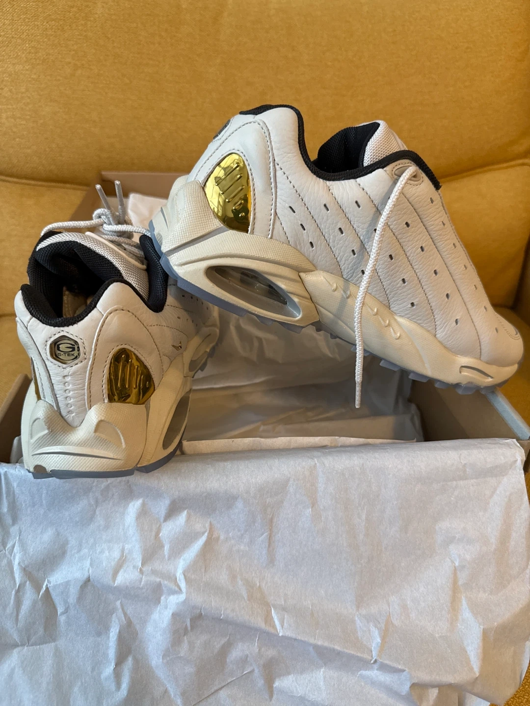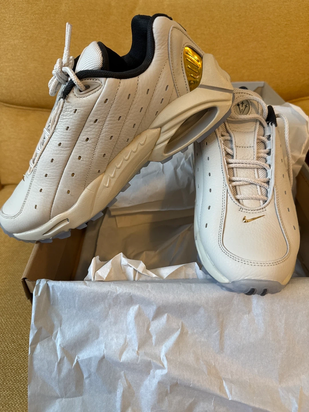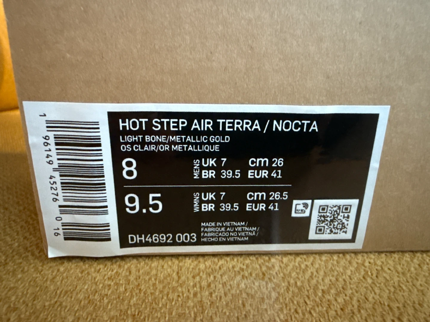 Selling a pair of Nike Hot Step Air Terra NOCTA sneakers. The colour is Light Bone/Metallic Gold. Comes with the original box!