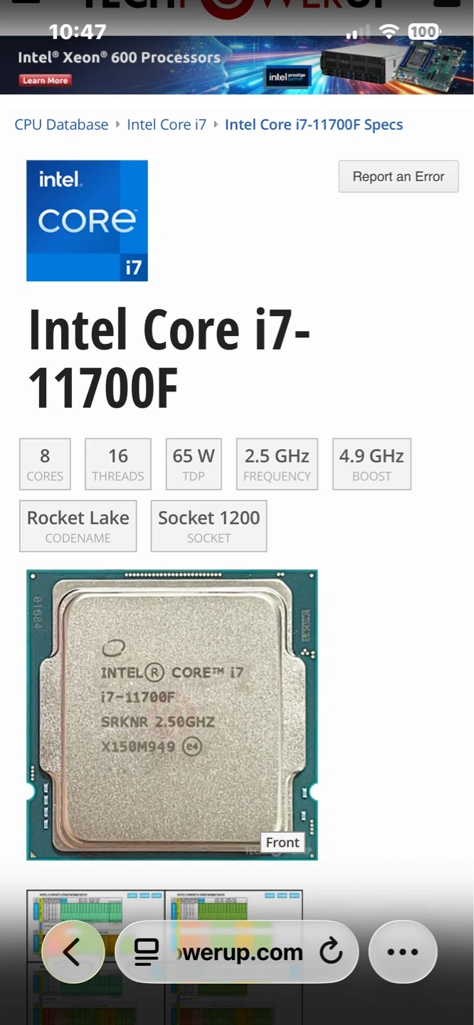 Intel Core i7-11700F processor. SRKNR model with a 2.50GHz base clock speed. It has 8 cores and 16 threads. Priced to move today