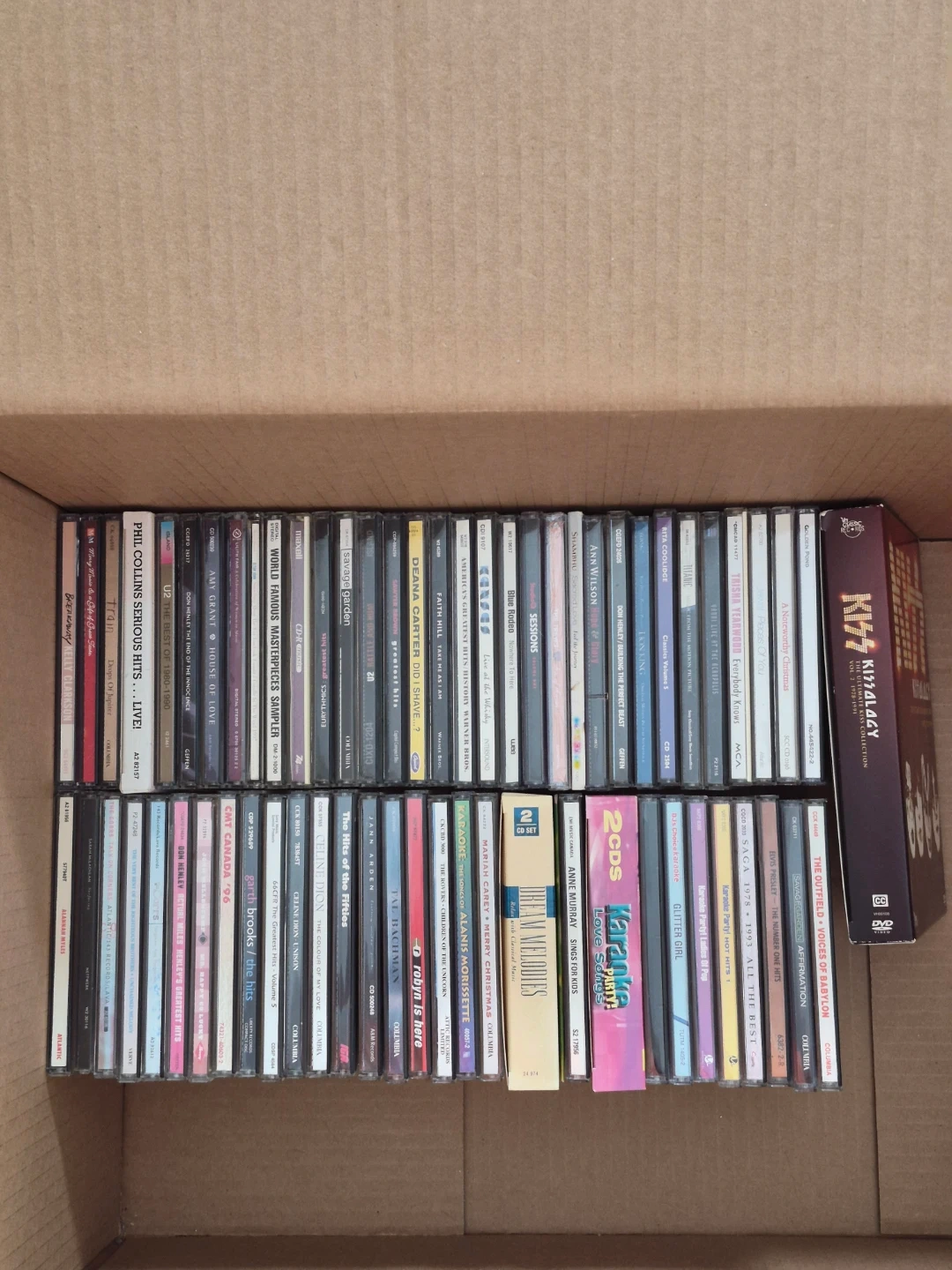 A collection of 64 CDs from various artists and genres. Includes pop, rock, and country music. All CDs are in standard jewel cases. This lot features artists like Garth Brooks, Phil Collins, and U2.