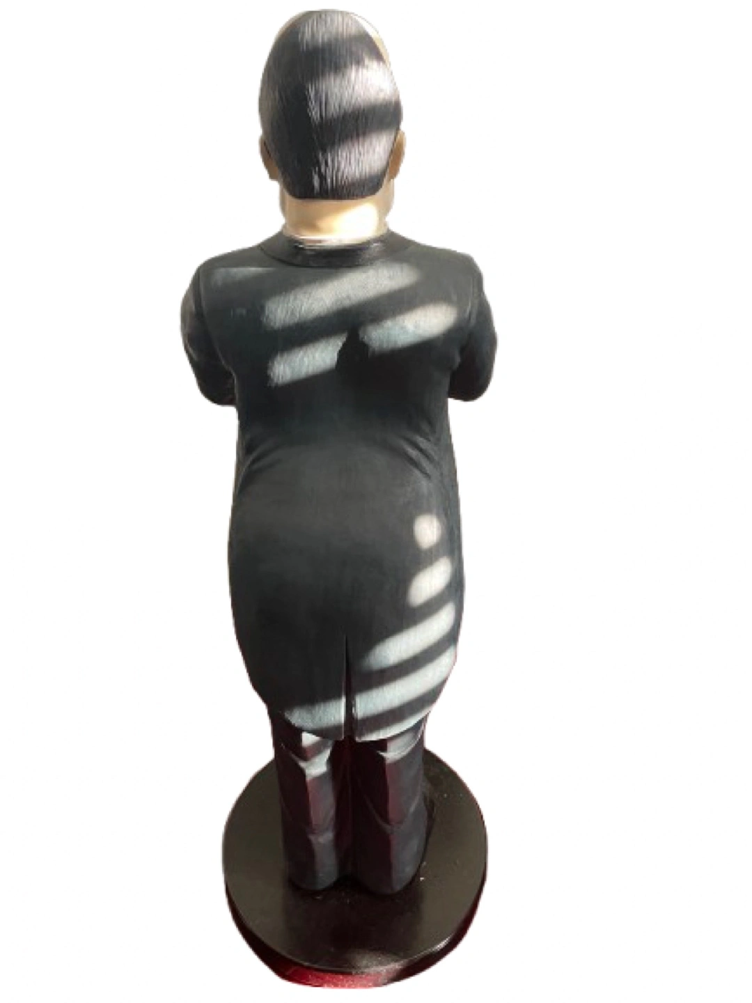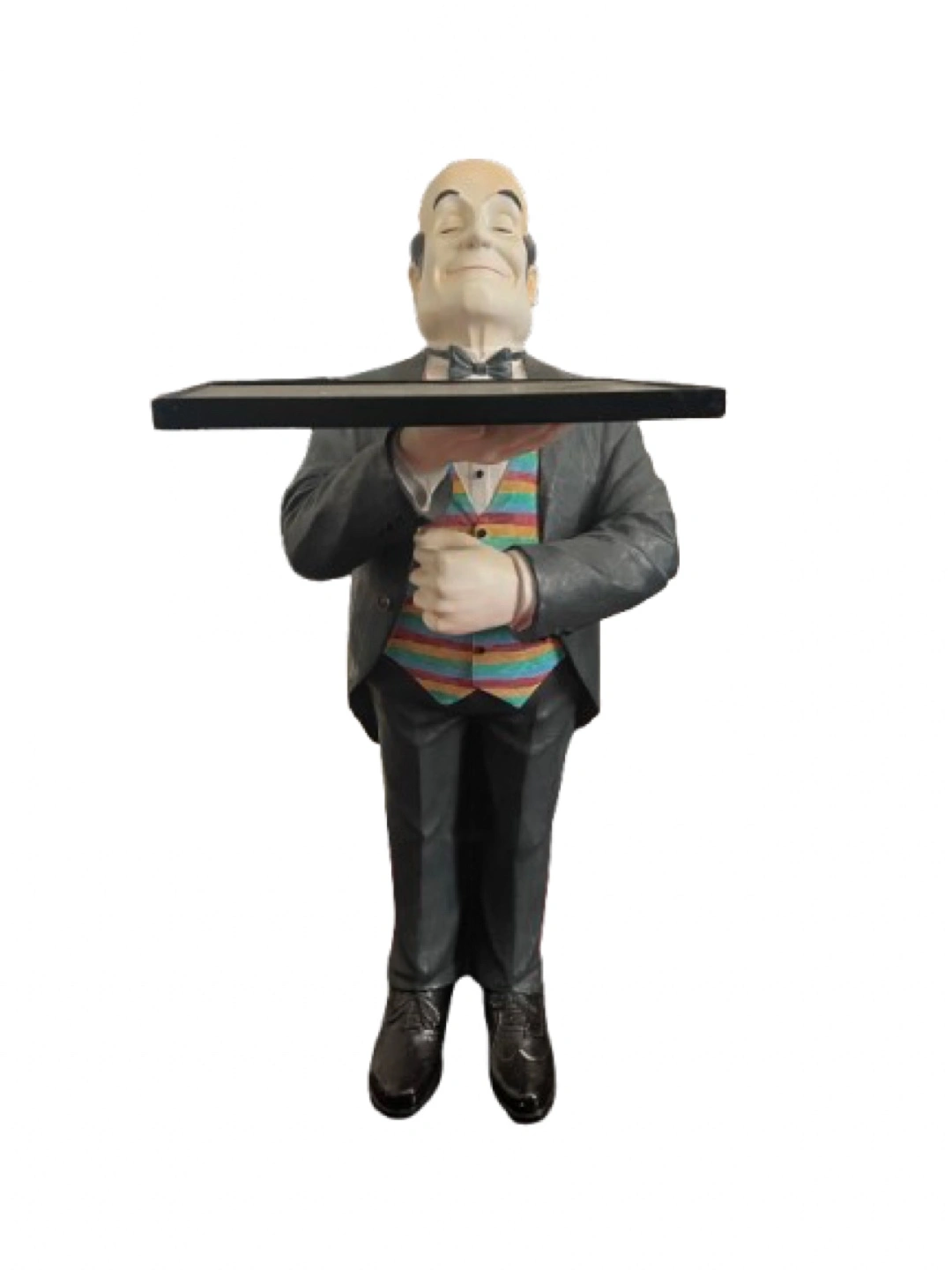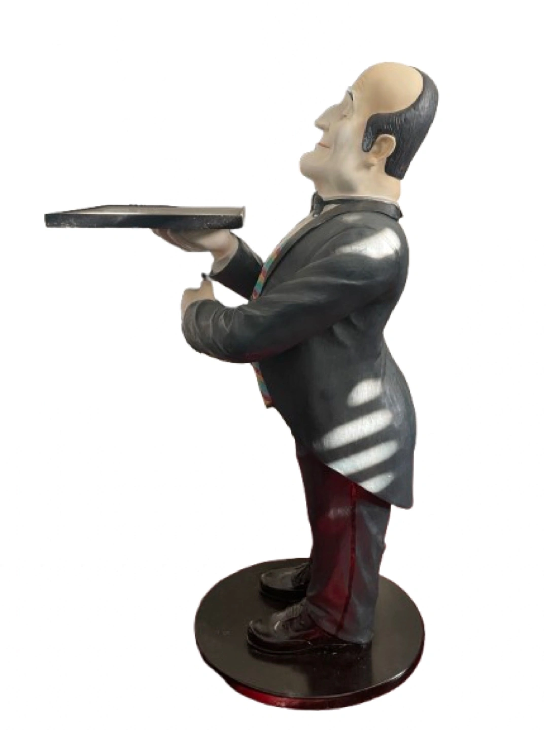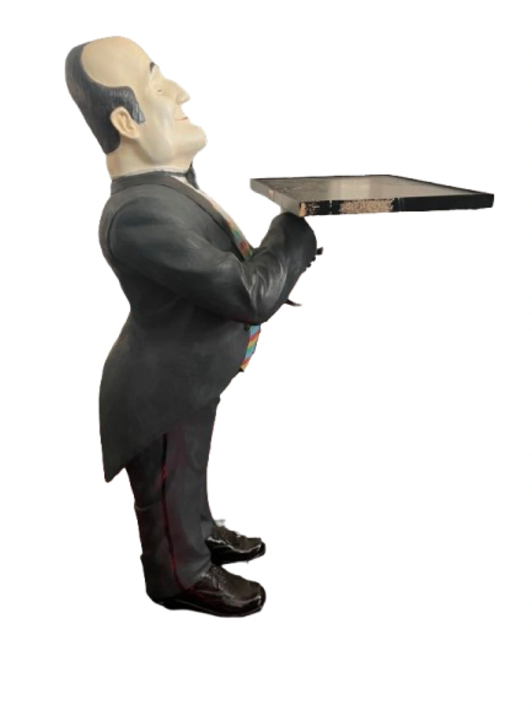 Add a touch of classic charm to your space with this used butler statue, complete with a tray, standing at approximately 3 feet tall. Perfect for adding character to any room, this statue is a delightful piece of decor.