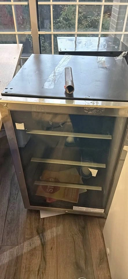 This Frigidaire 138-can beverage centre is in new open box condition and has been fully tested and is working. It's perfect for keeping drinks cold and for entertaining. Features a sleek stainless steel design with a glass door, adjustable shelves, and precise temperature control. New price was $630, selling for $380. You can test it before you buy. Let me know if you're interested!