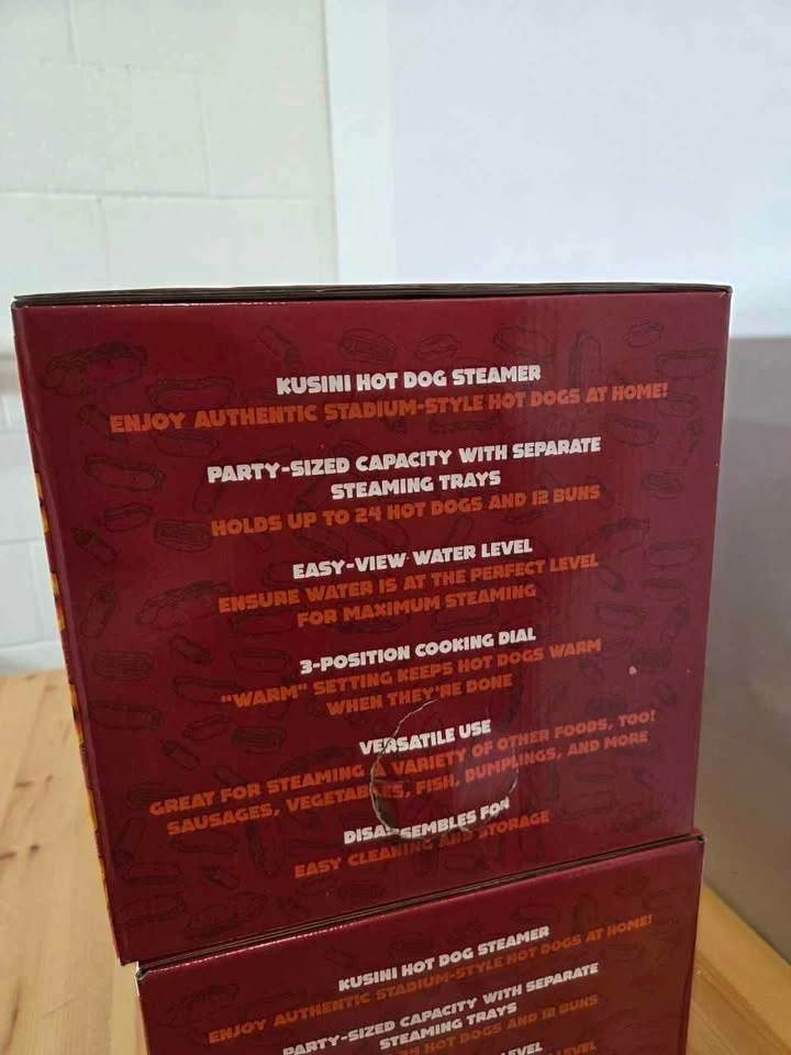 Brand new. Large capacity steamer holds up to 24 hot dogs and 12 buns. Built-in bun warmer keeps everything ready to serve. Great for home parties, movie nights, or family gatherings. Can also steam vegetables, fish, and other foods. Simple electric operation and easy to clean. Let me know if you're interested!