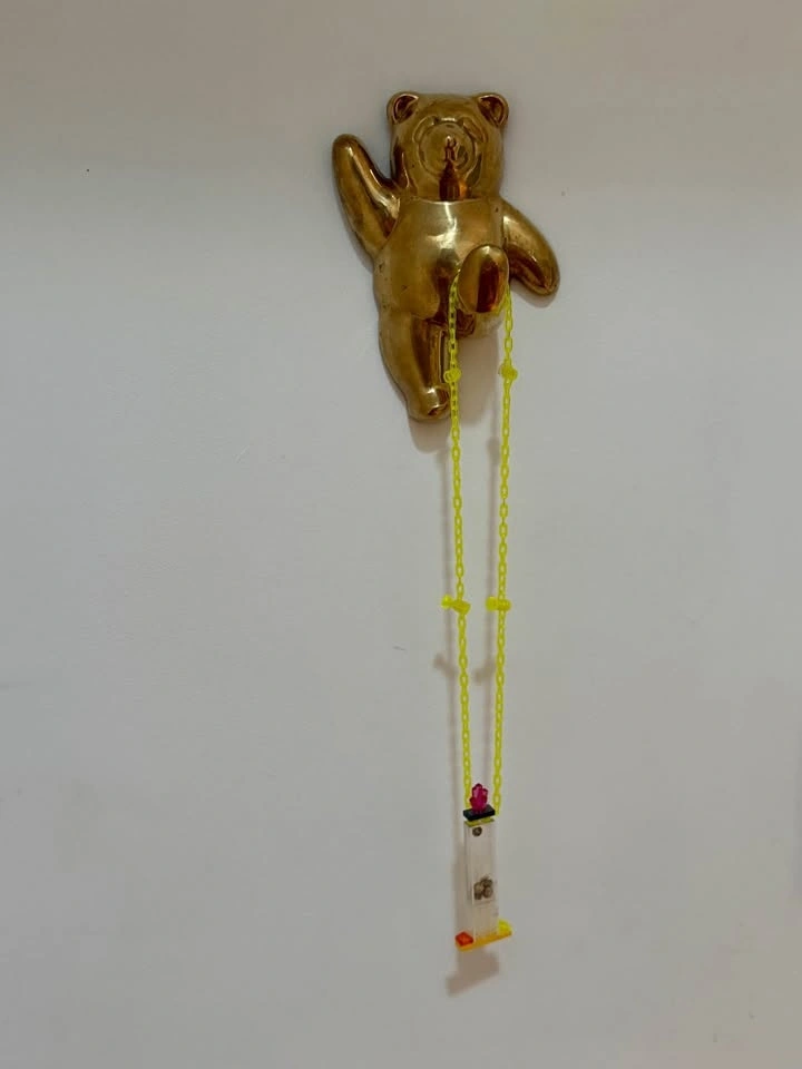 Vintage Brass Waving Teddy Bear / Panda Wall Hook