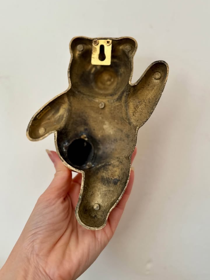 Vintage Brass Waving Teddy Bear / Panda Wall Hook