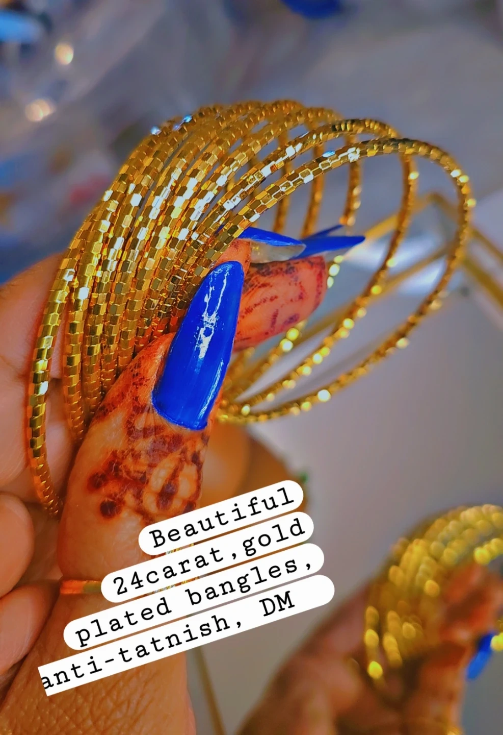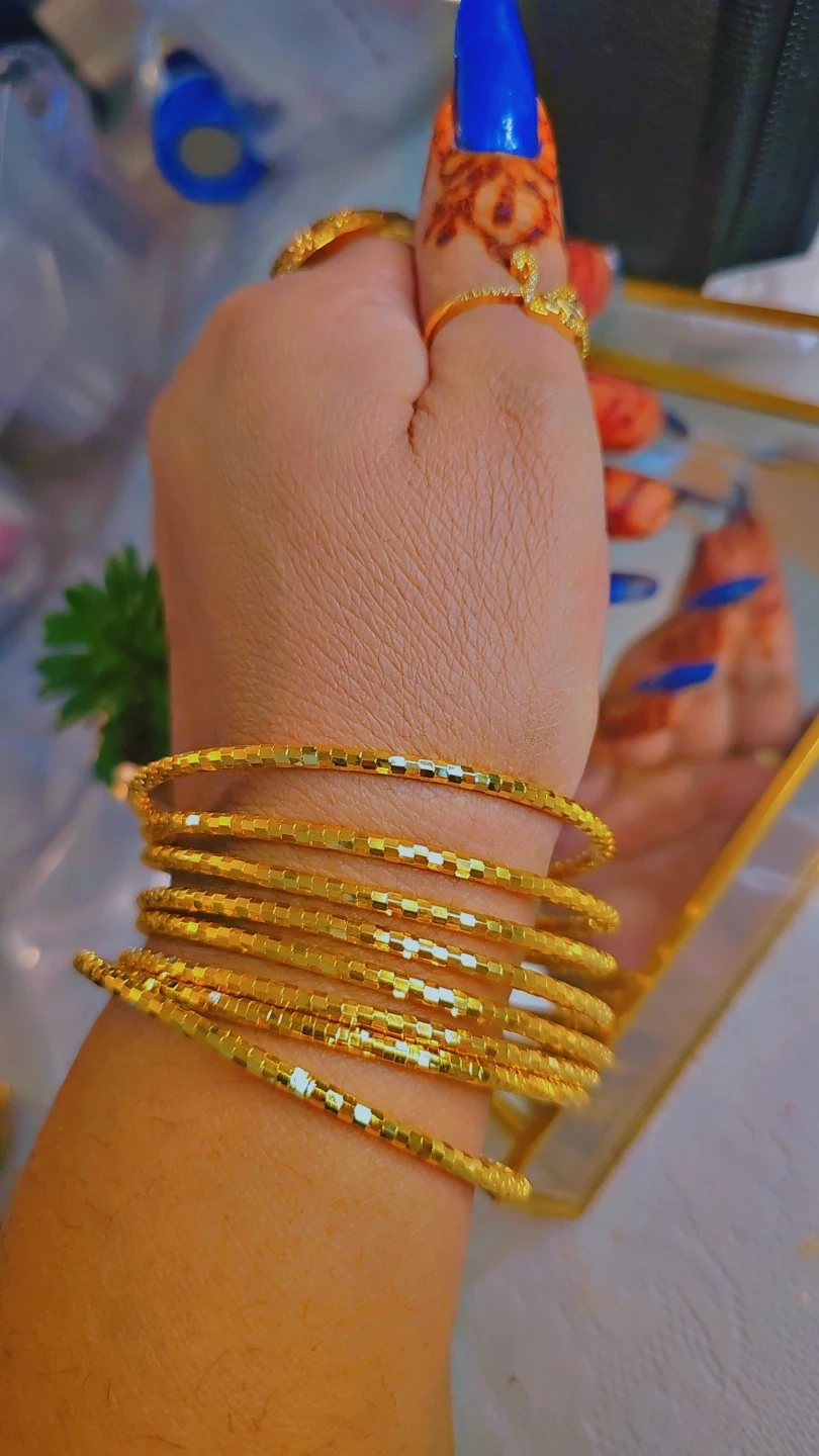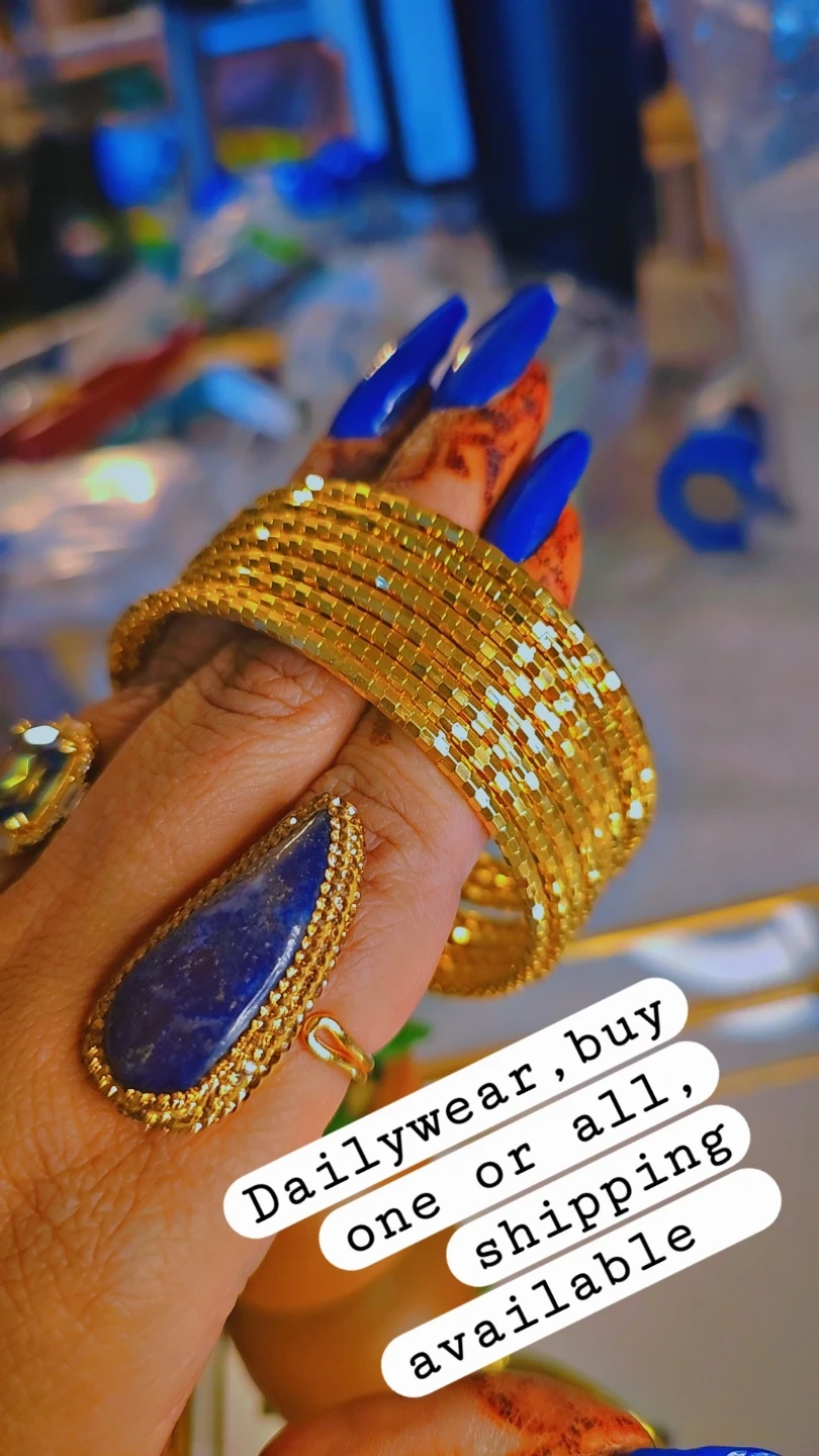 These beautiful 24K gold plated bangles are anti-tarnish. They're perfect for daily wear, and you can buy one or all of them. Shipping is available! price for 8 bangles is $65, each is $10