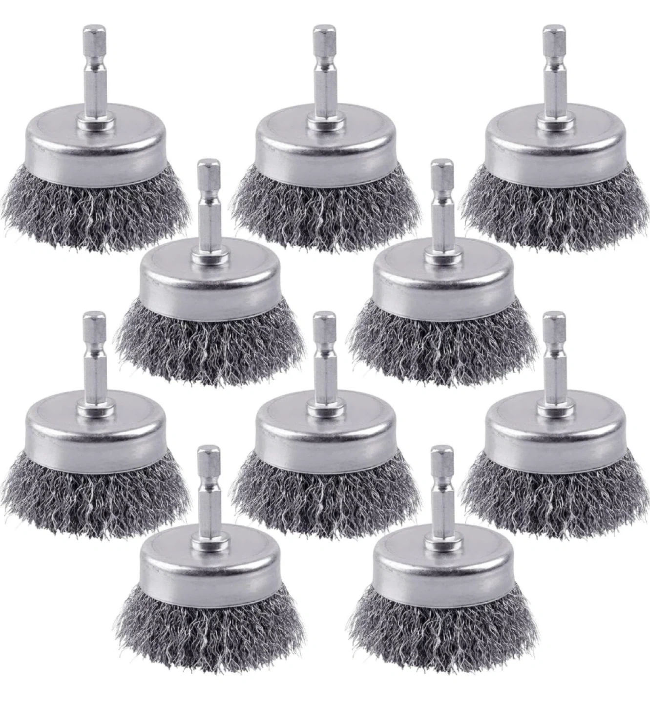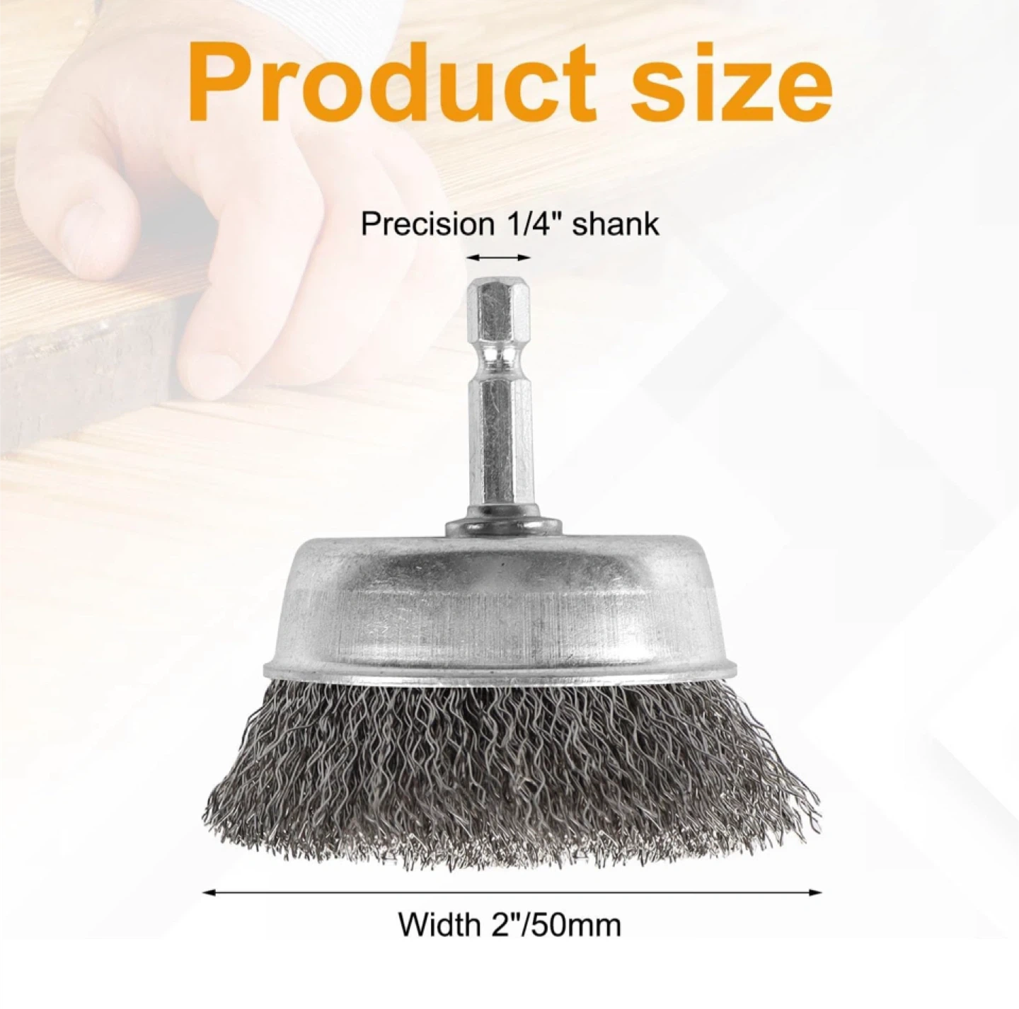 Get your cleaning and polishing done with this handy wire wheel brush set! Perfect for drills, these brushes are made with durable 72A steel wire and feature a precision 1/4" shank. The product size is 2"/50mm. Great for removing rust and grime!