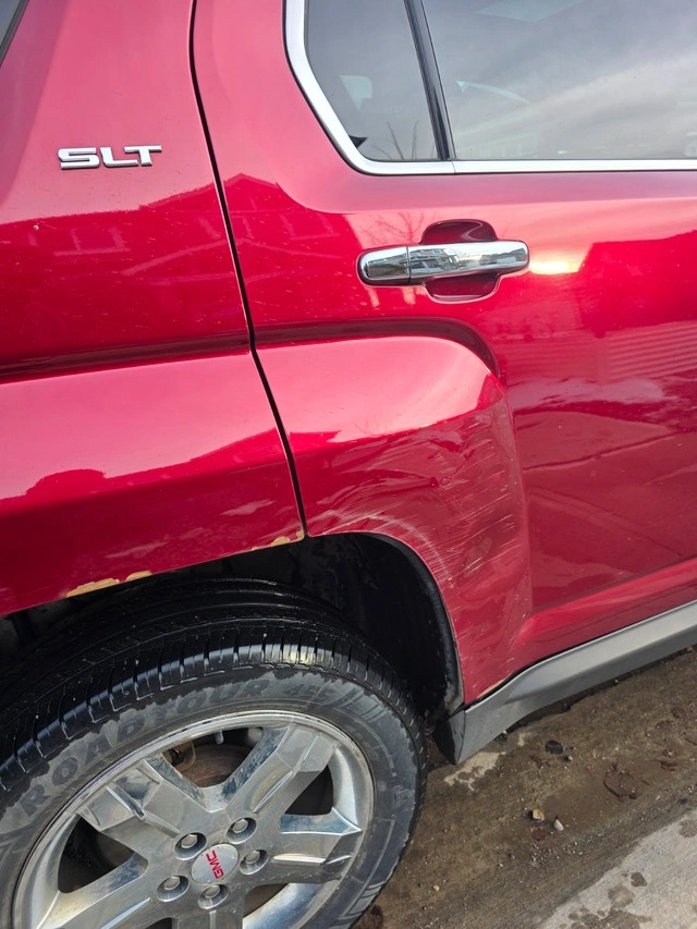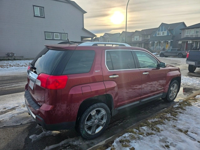 2012 GMC Terrain AWD SLT2 for sale. It's an AWD V6 with heated leather seats, sunroof, park assist, lane departure warning, navigation, backup camera, and trailer hitch. There's a scratch on the right rear quarter panel with a small amount of rust, as shown in the pictures. Other than that, it drives great. Asking $5800 obo.