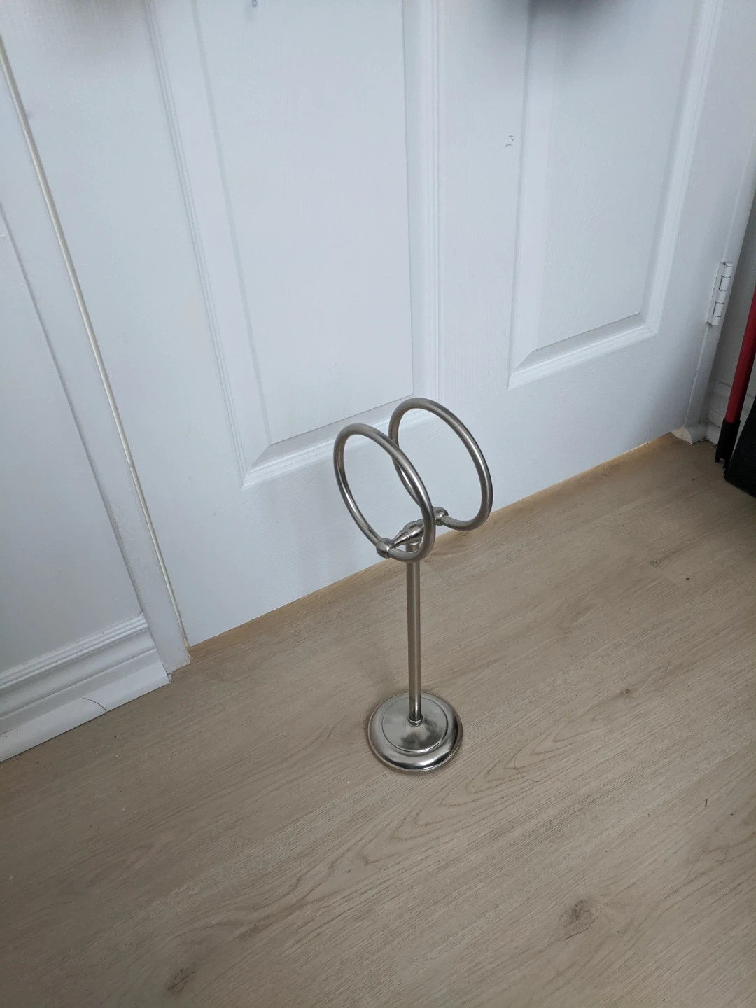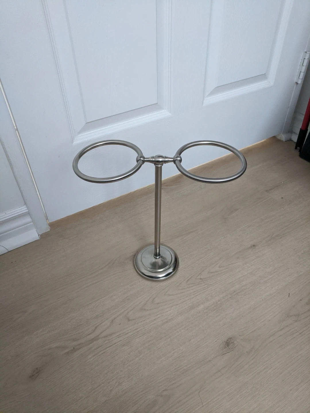This tabletop napkin holder has a brushed metal finish. It features two circular rings to hold napkins upright. It's ideal for keeping your table tidy during meals. Pick up at 195 Merton Street Toronto or pick up at Subway station Davisivill.