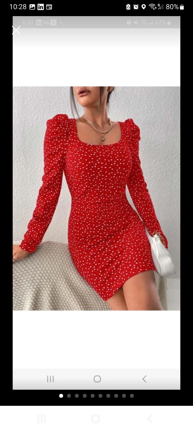 Beautiful women's dresses with various patterns and styles. Includes a teal fitted dress with cap sleeves, a red polka dot long-sleeve dress, and a light blue floral print dress. Materials vary by style.