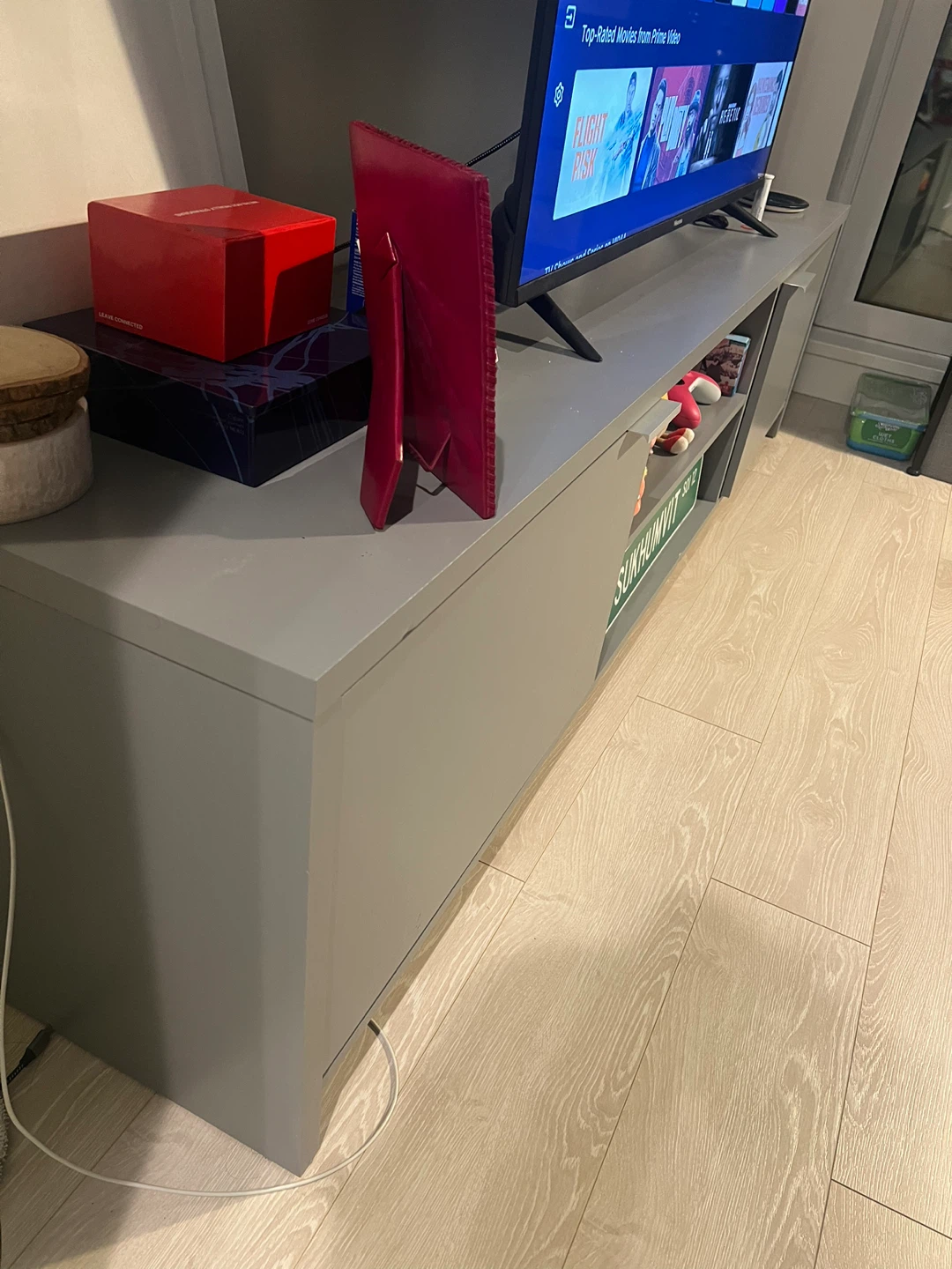Selling a grey TV stand. It's in great condition and would be perfect for any living room!