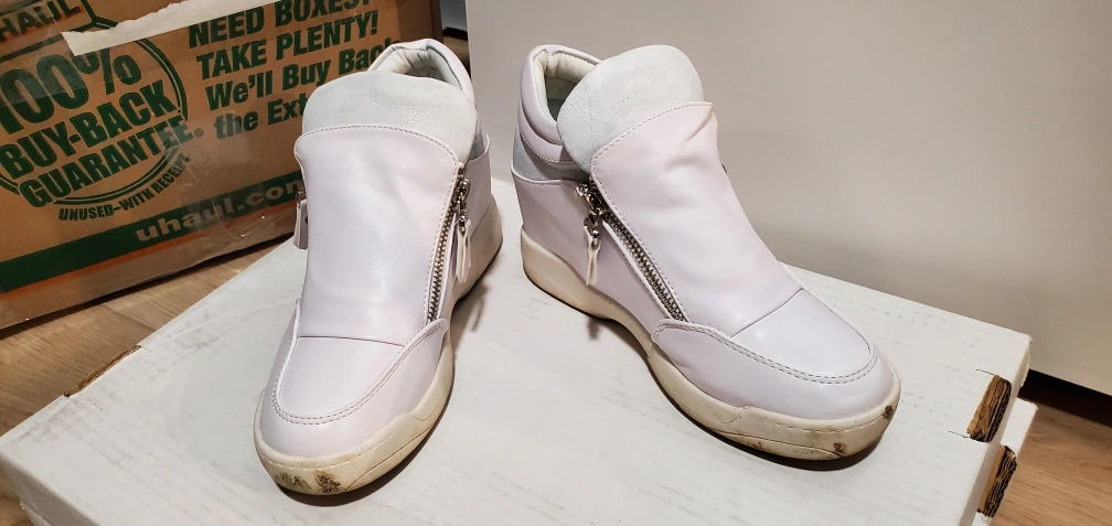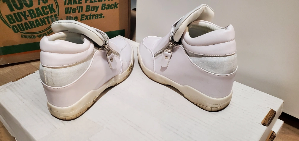 size 5US. they're like white sneakers but not really meant for running. they're quite dirty, needs some tcl. i used them for one cosplay and stored them.
