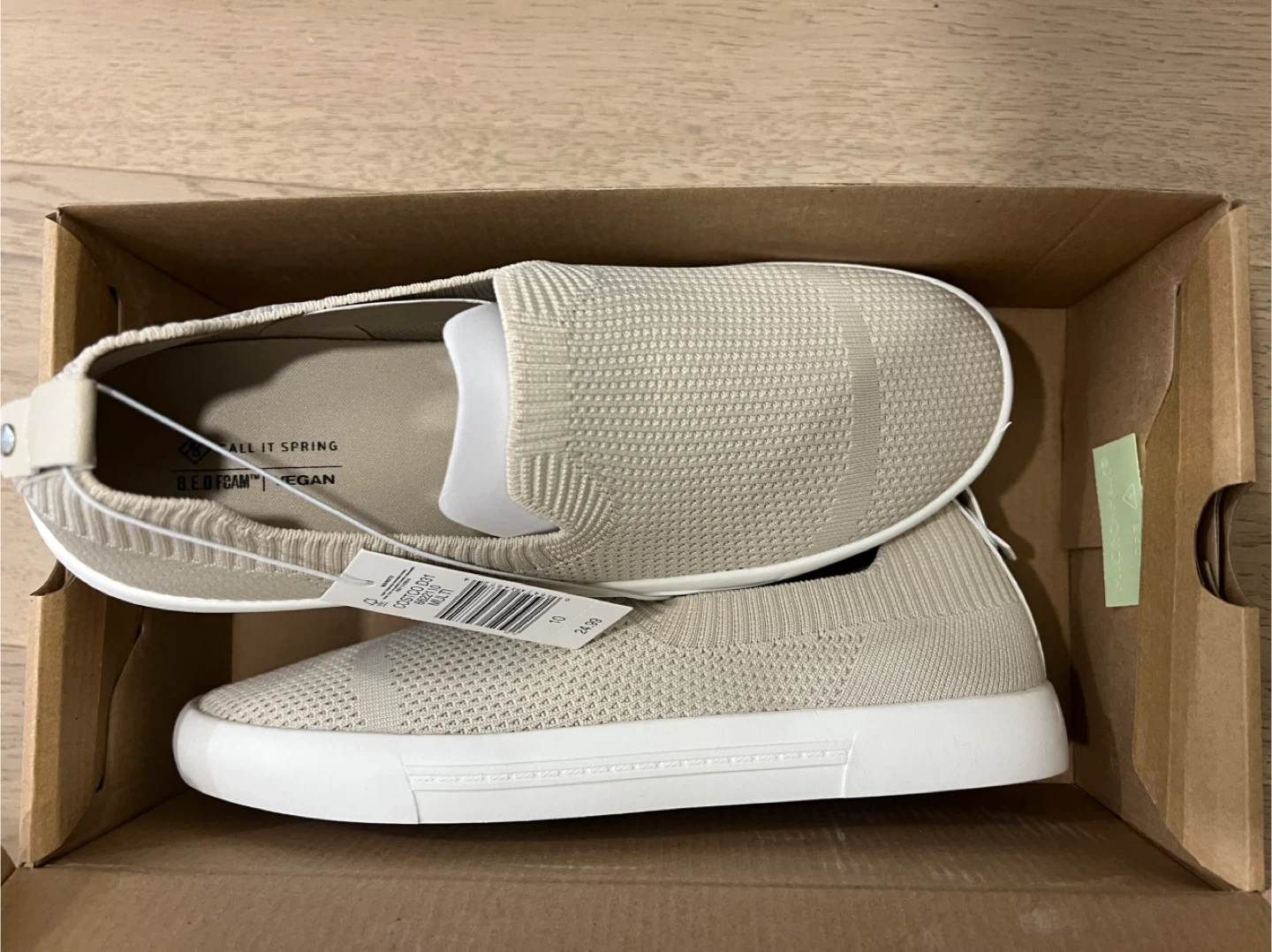 Selling a pair of Call It Spring slip-on shoes in size 10! These are B.E.D Foam and 100% vegan. They come with the original box