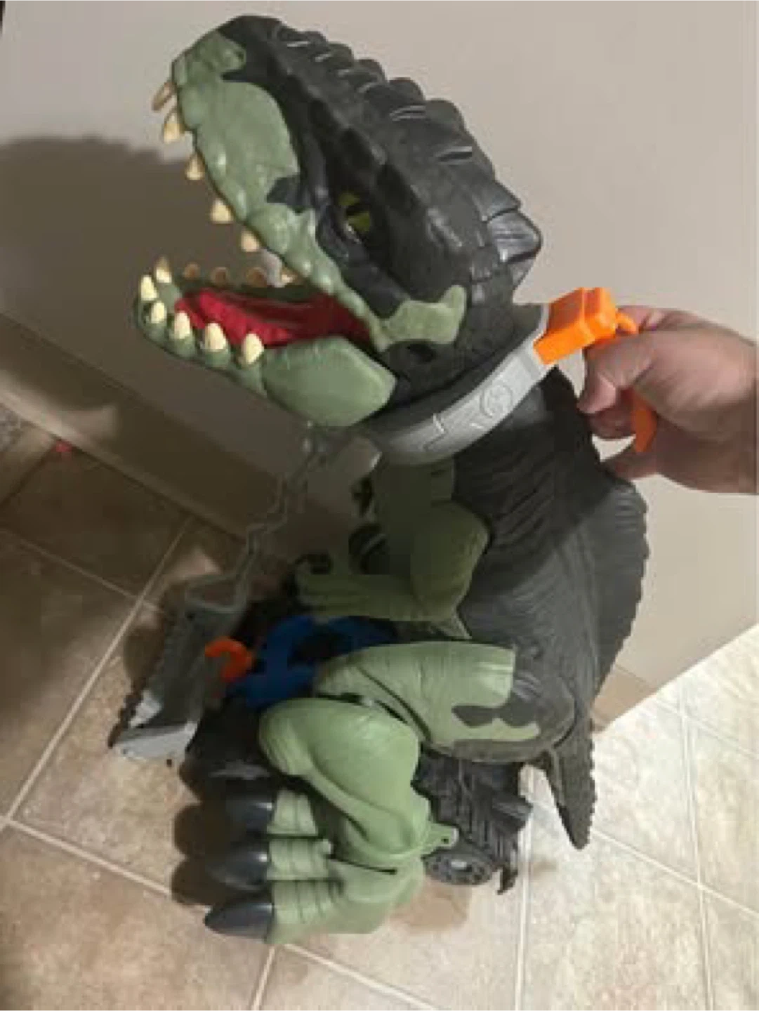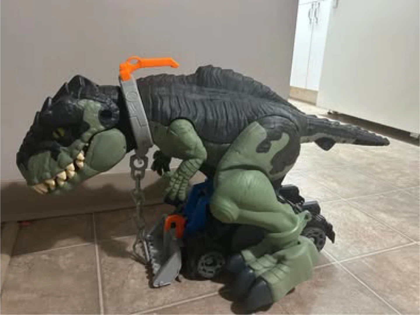 Selling a T-Rex toy that comes with a vehicle. It's in great condition and ready for a new home with a dinosaur enthusiast! The toy features a detailed design and is perfect for imaginative play