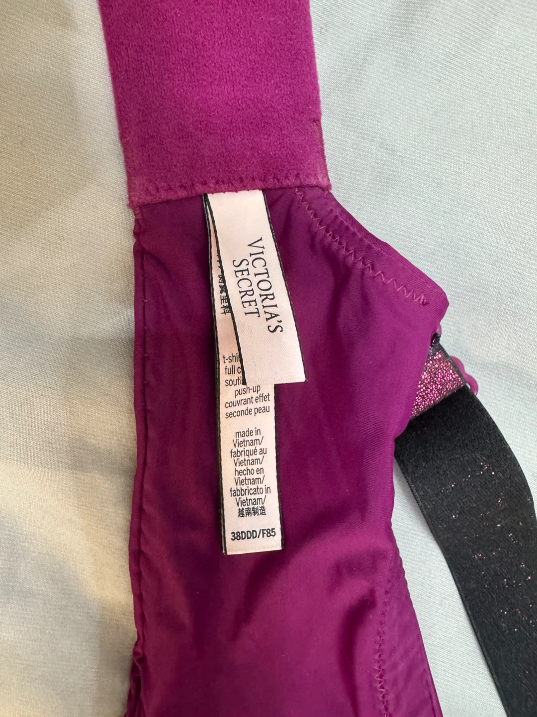 Victoria's Secret T-shirt full coverage push-up bra in size 38DDD. It's a beautiful purple color. Made in Vietnam.