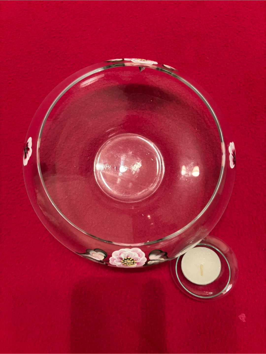 Floral Painted Glass Bowl with Floating Candle Holder