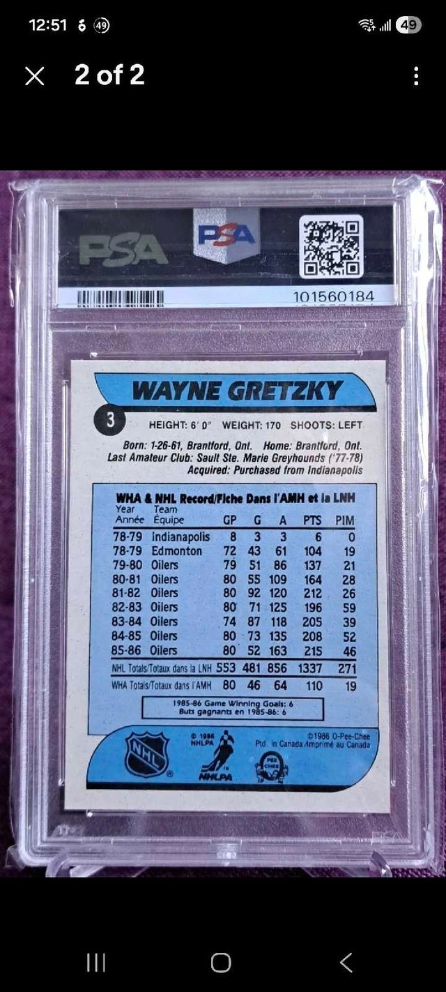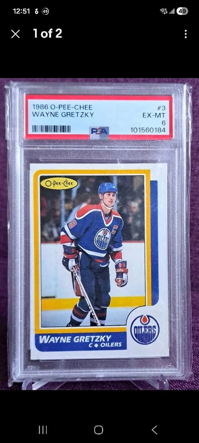 Buy & Sell1986 O-Pee-Chee Wayne Gretzky Card 3 PSA 61986 O-Pee-Chee Wayne Gretzky Card 3 PSA 6$60This is a 1986-87 O-Pee-Chee Wayne Gretzky card, number 3, graded PSA 6. It's from a private collection.WHERE TO MEETCheck LocationView MapSELLERverifiedJbesUptown650 reviews0 chats·0 favorites·8 viewsSEND CHAT TO SELLERHi Jbes! I’m interested in your listing.Hi Jbes! I’m interested in your listing.Get the Karrot app to chatSign In to chat