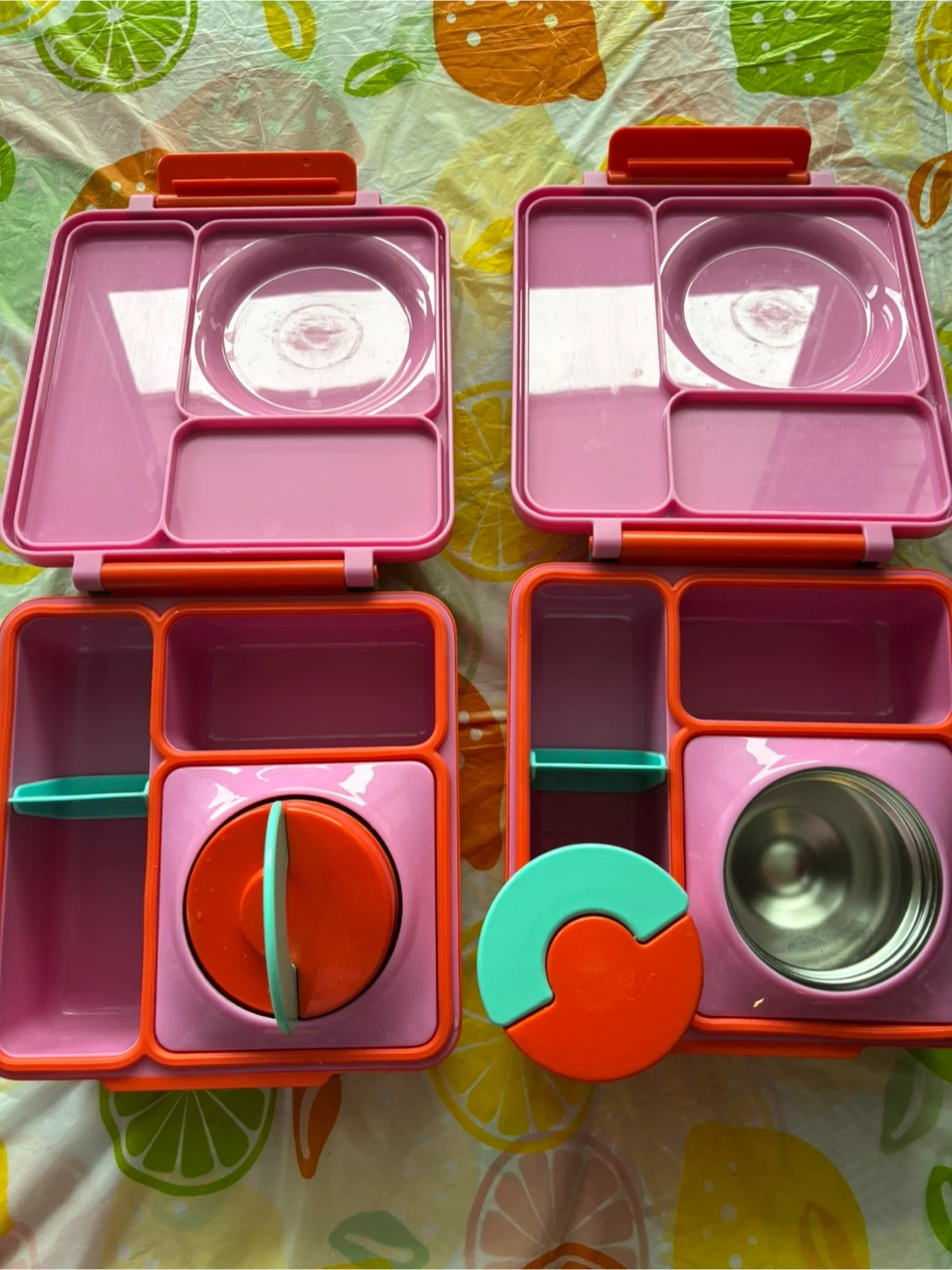 Selling OmieBox bento lunch boxes in pink and orange. Great for packing kids’ lunches and in like-new condition—clean and ready for a new home.