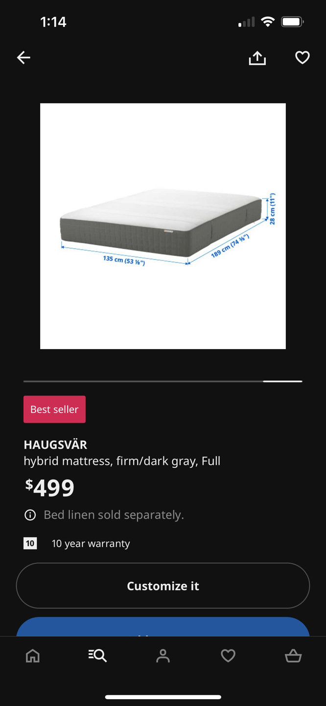 1 / 41 / 4Buy & Sell⬆️ full size ikea foam mattress⬆️ full size ikea foam mattress$50IKEA full size. No stain. Barely used. Pickup onlyConditionGoodWHERE TO MEETElgin mills leslieView MapSELLERkafkarlThe Hill663 reviews0 chats·0 favorites·5 viewsSEND CHAT TO SELLERHi kafkarl! I’m interested in your listing.Hi kafkarl! I’m interested in your listing.Get the Karrot app to chatSign In to chat