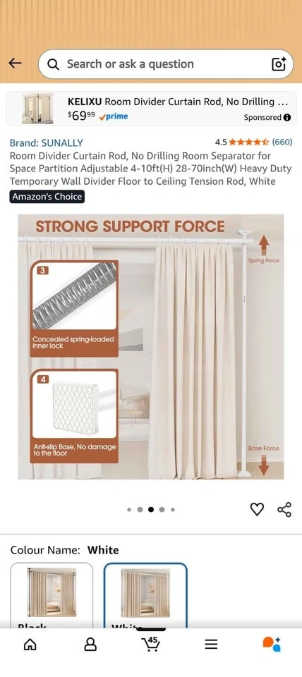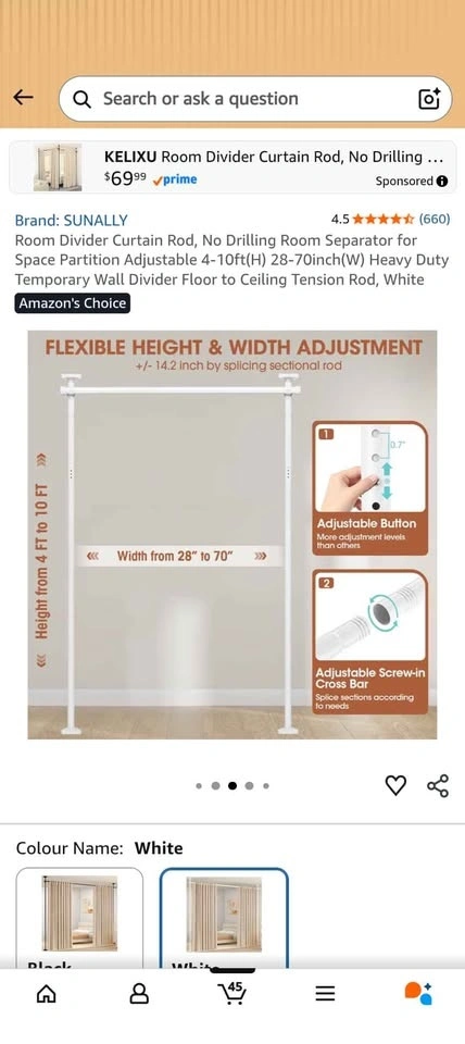 Buy & SellAdjustable No-Drill Room Divider Curtain Rod (28-70")Adjustable No-Drill Room Divider Curtain Rod (28-70")$30New in box. Pick up in Richmond near the Walmart.WHERE TO MEETWalmart SupercentreView MapSELLERverifiedEltonW Camble29020 reviews1 chats·1 favorites·11 viewsSEND CHAT TO SELLERHi Elton! I’m interested in your listing.Hi Elton! I’m interested in your listing.Get the Karrot app to chatSign In to chat