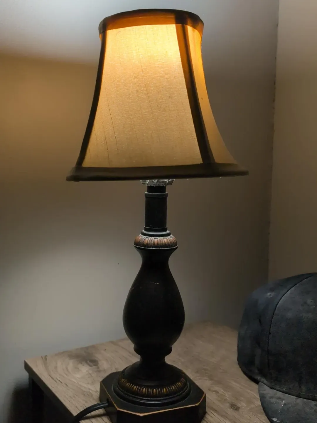 Black Table Lamp with Beige Shade