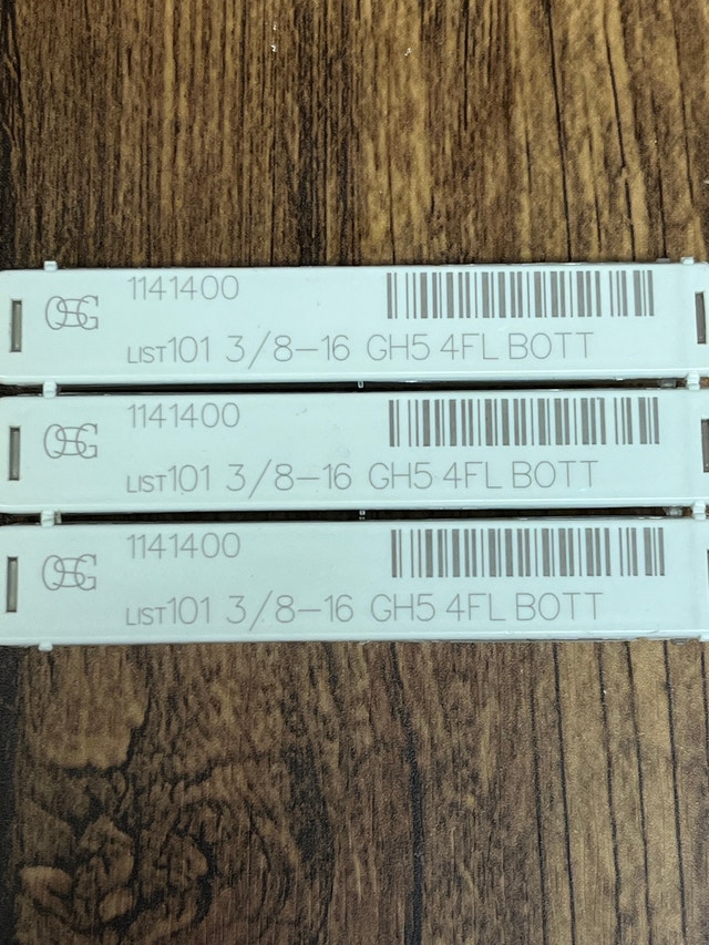 For sale are three Machinist Taps 3/8 - 16 GH5 4FL BOTT. $30 each, or make an offer for all three. They appear to be brand new. I have a lot more tools for machinists. Pickup is in Etobicoke, near Queensway and Islington. Cash only.