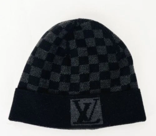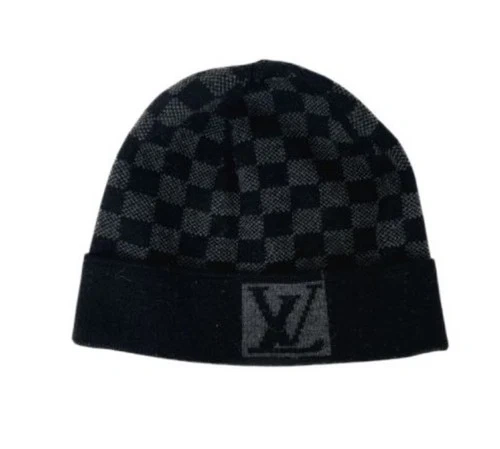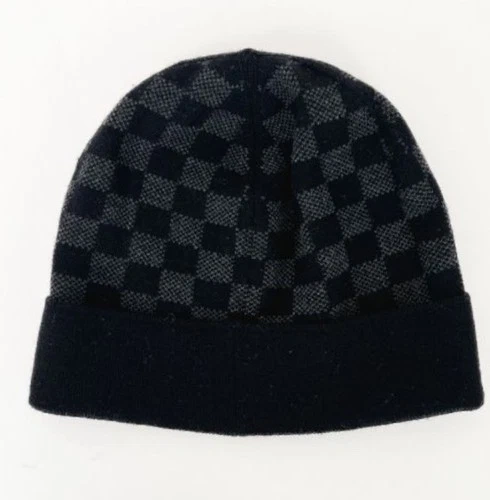 Louis Vuitton Vintage Y2K LV Wool Damier Beanie Black and Grey