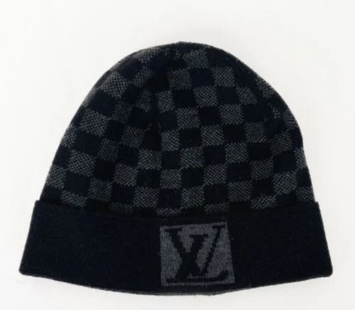 Louis Vuitton Vintage Y2K LV Wool Damier Beanie Black and Grey