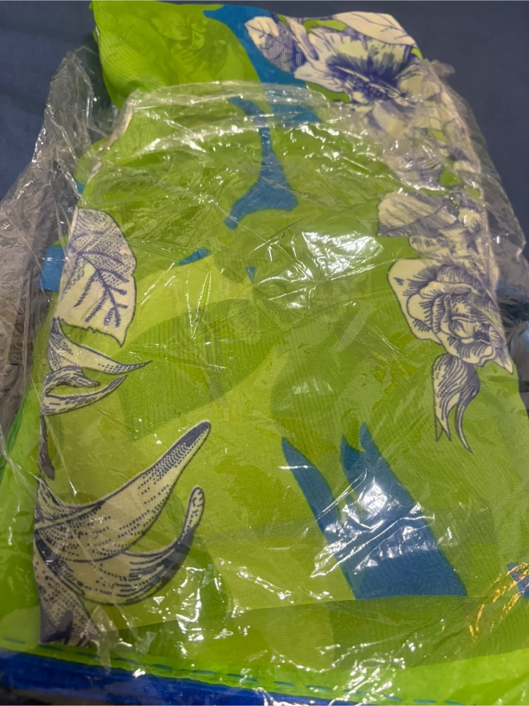 The vibrant green and blue colours make it perfect for any occasion. The fabric feels lovely and soft to the touch. It's still in its original packaging, so you know it's never been worn!