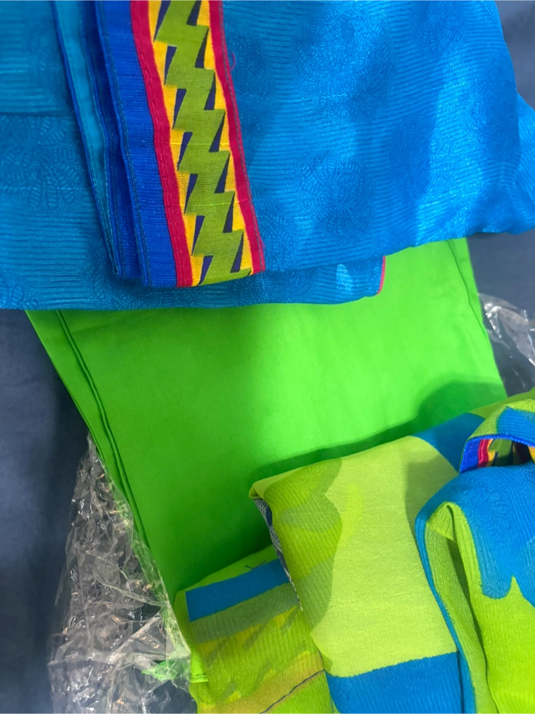 The vibrant green and blue colours make it perfect for any occasion. The fabric feels lovely and soft to the touch. It's still in its original packaging, so you know it's never been worn!