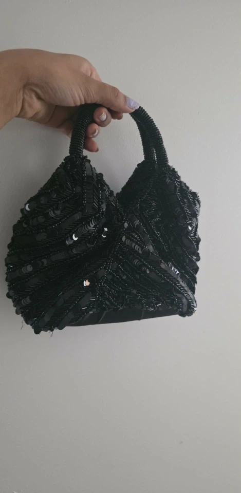 A stylish brown Coach crossbody bag with signature print details. It features a gold chain strap and a flap closure.