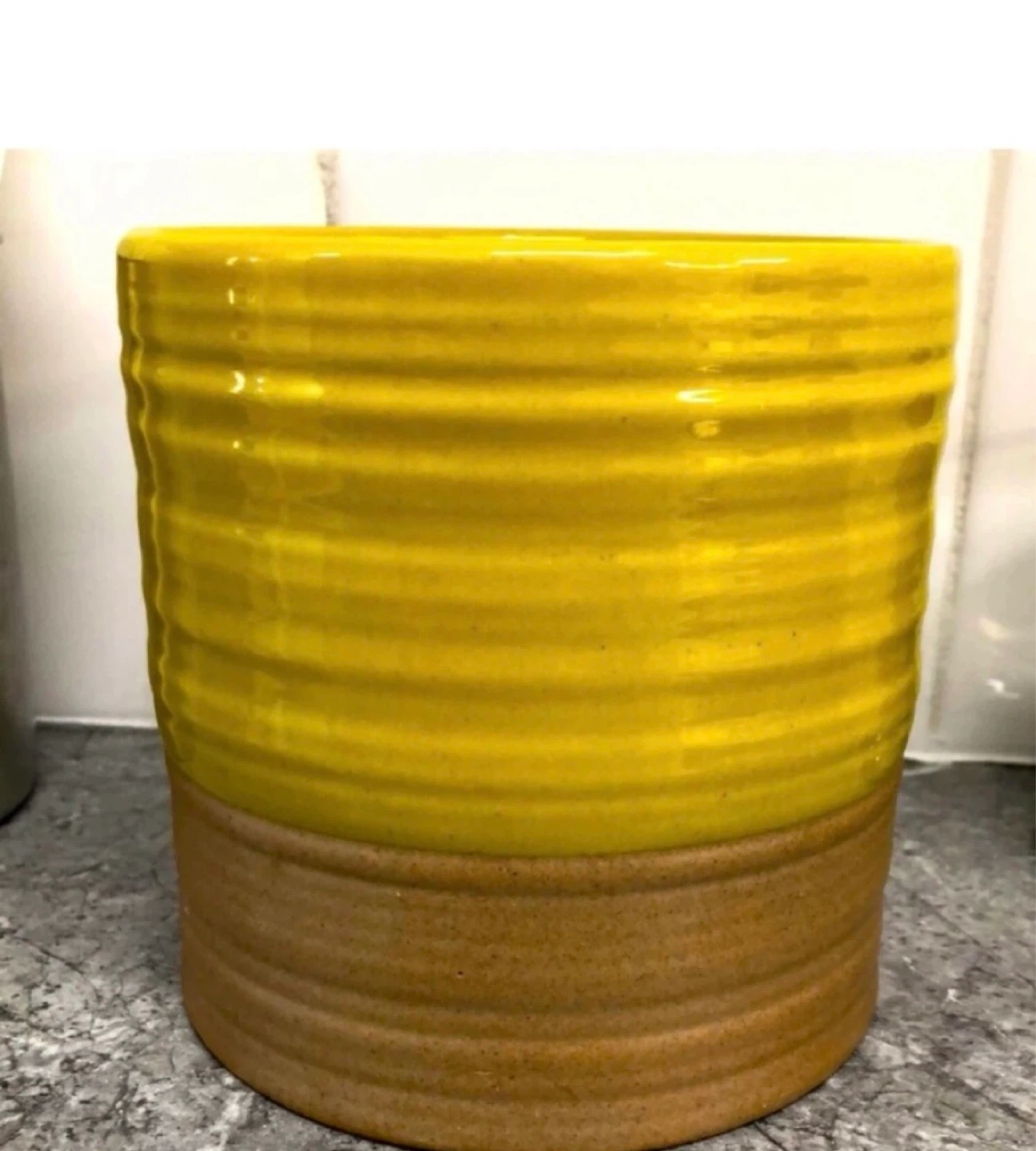 Selling a cute yellow ceramic flower pot! It's in great condition and would be perfect for adding a pop of colour to any room