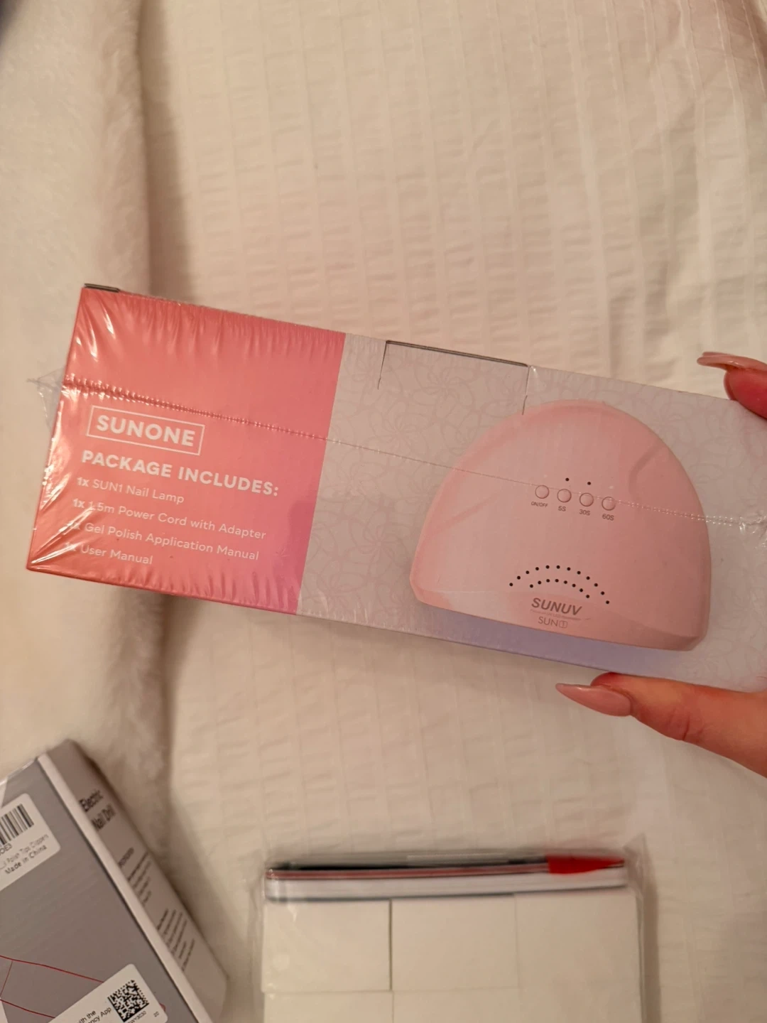 Selling a brand new SUNUV SUNONE 2-in-1 UV LED nail lamp! It comes with an electric nail drill. Also nail accessories like nail clips for removing the polish beforehand.