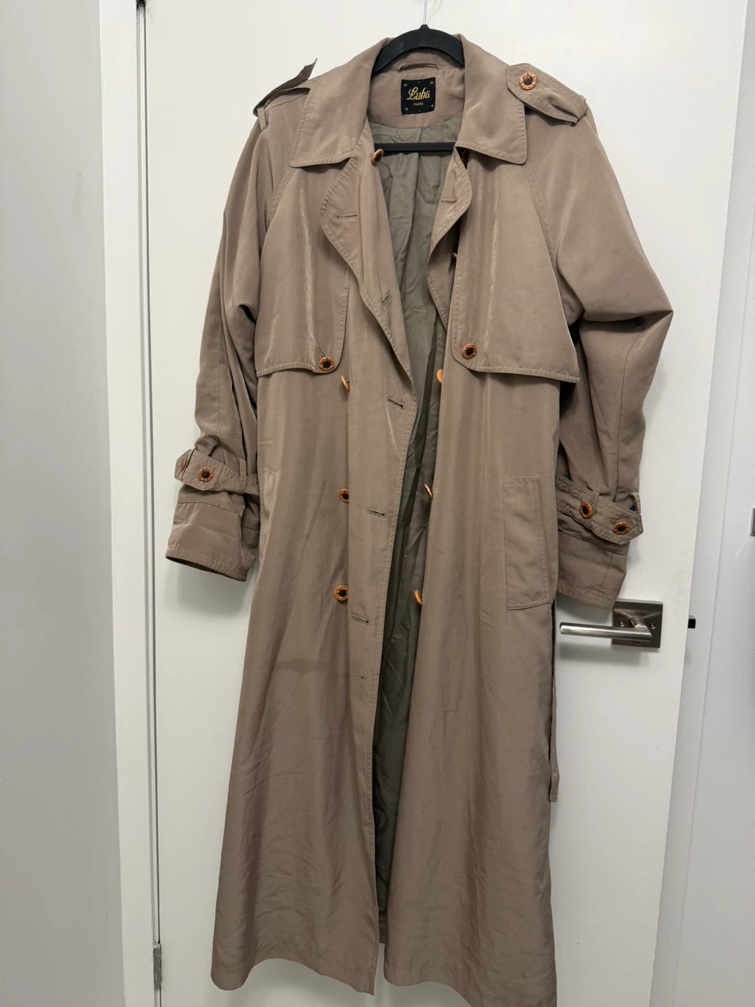 Bundle includes 2 tan trench coats, a denim jacket, and a vintage leather jacket. Various brands and styles.