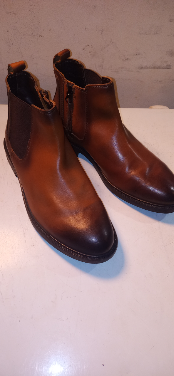 Brand new size 7 men's (40) or women's 8 1/2 to 9 burnt leather shoe. Side zipper and thick sole, heavy stitch. Perfect for fall/winter times. Never worn. Strong and durable. Compare online. Half the price if not more... Was a gift but wrong size. They do sell for over $100. a pair...