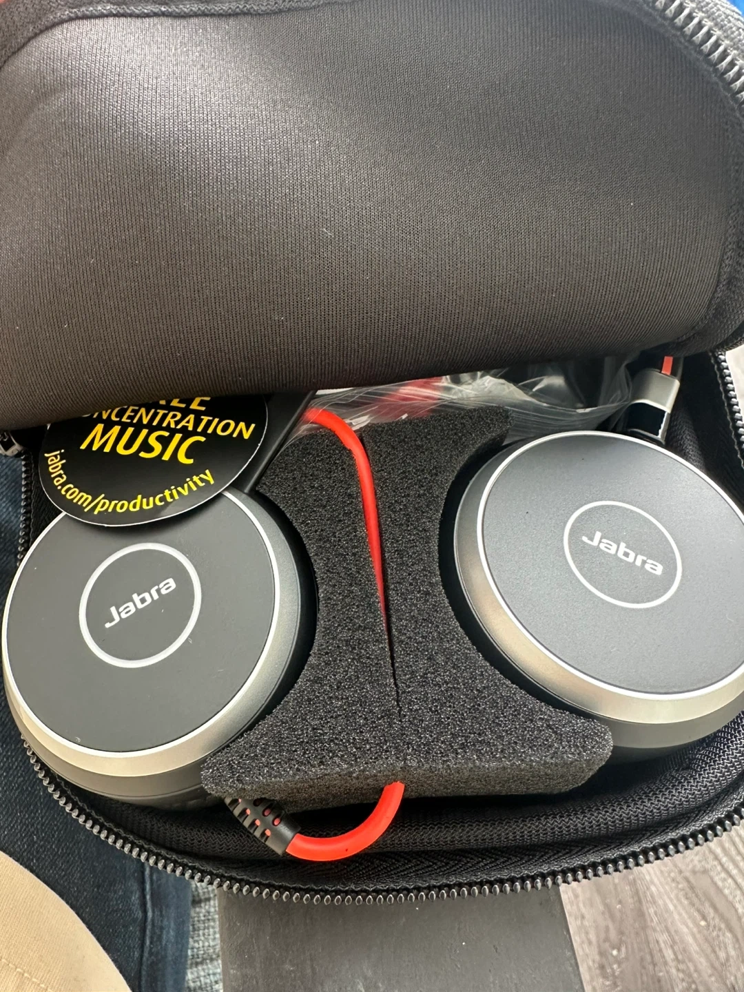 Selling a new Jabra Evolve 40 stereo headset! It's a corded headset perfect for business or personal use. Comes with its original case and quick start guide!
