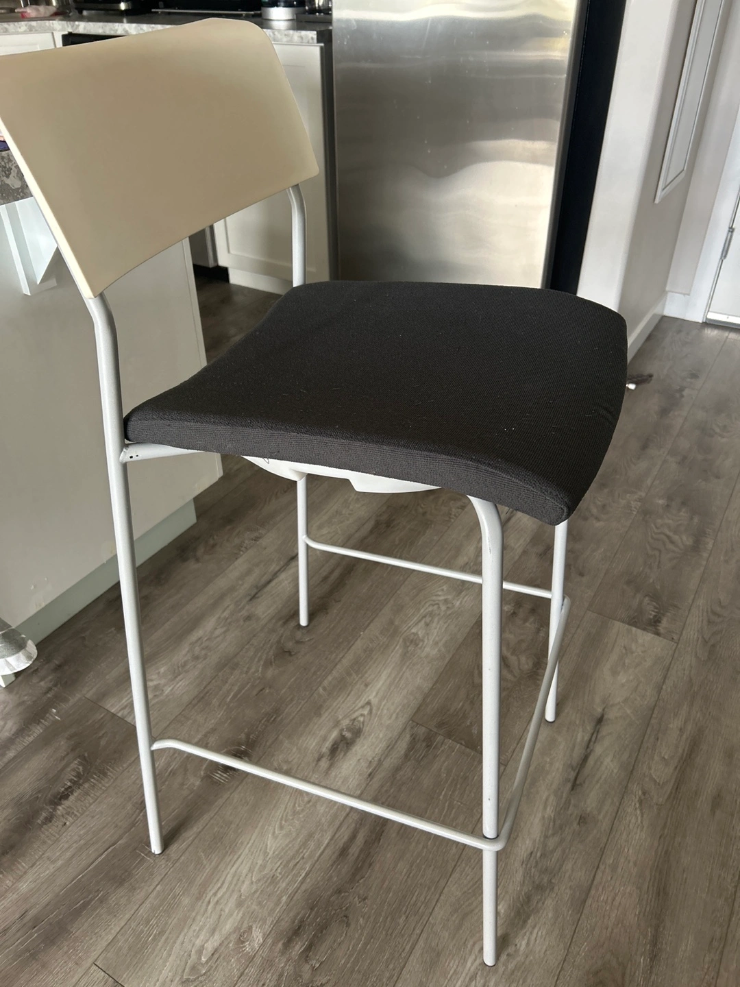 Selling a gently used Allermuir bar stool. It features a comfortable black seat and a clean white frame. Perfect for adding a modern touch to your kitchen or bar area!