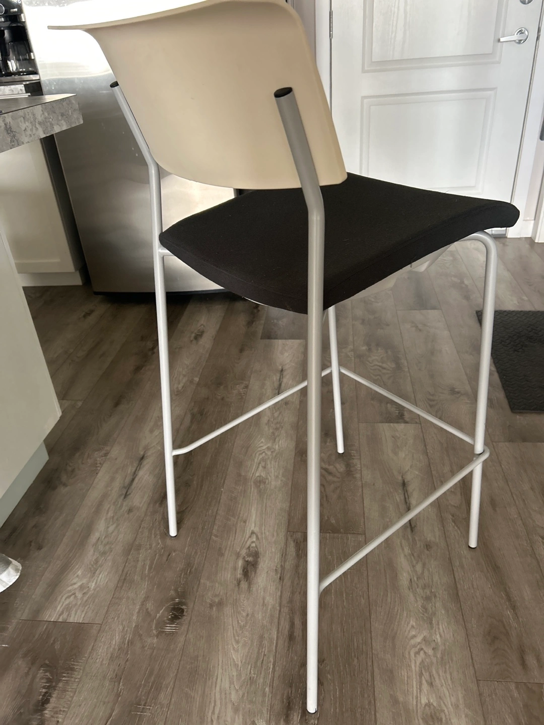 Selling a gently used Allermuir bar stool. It features a comfortable black seat and a clean white frame. Perfect for adding a modern touch to your kitchen or bar area!