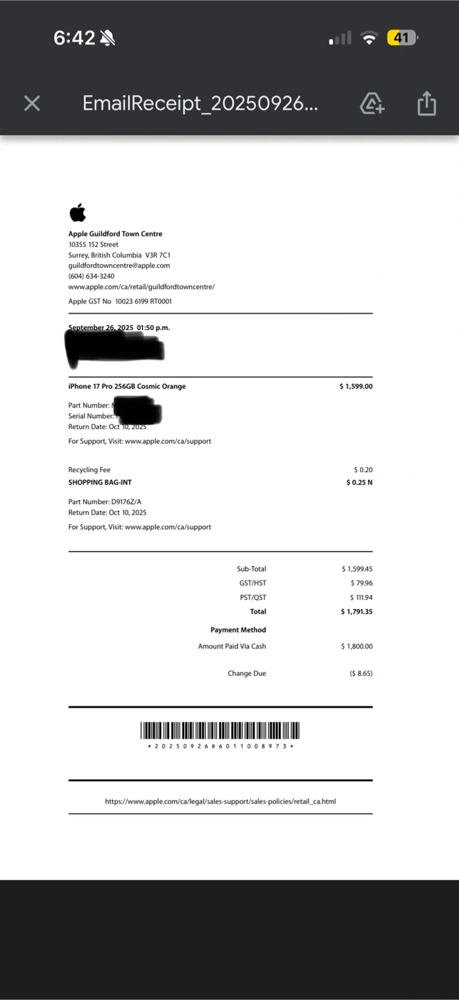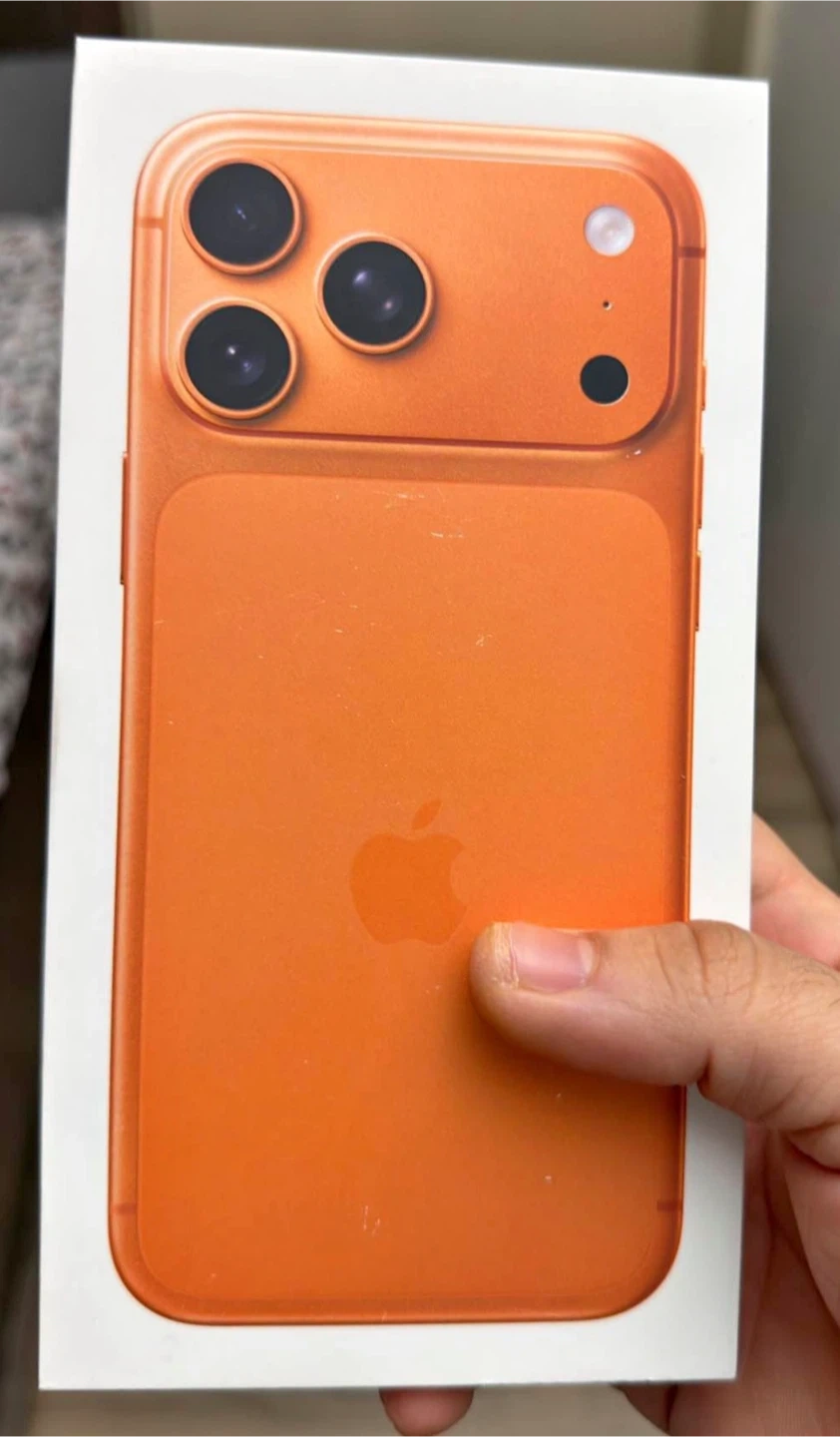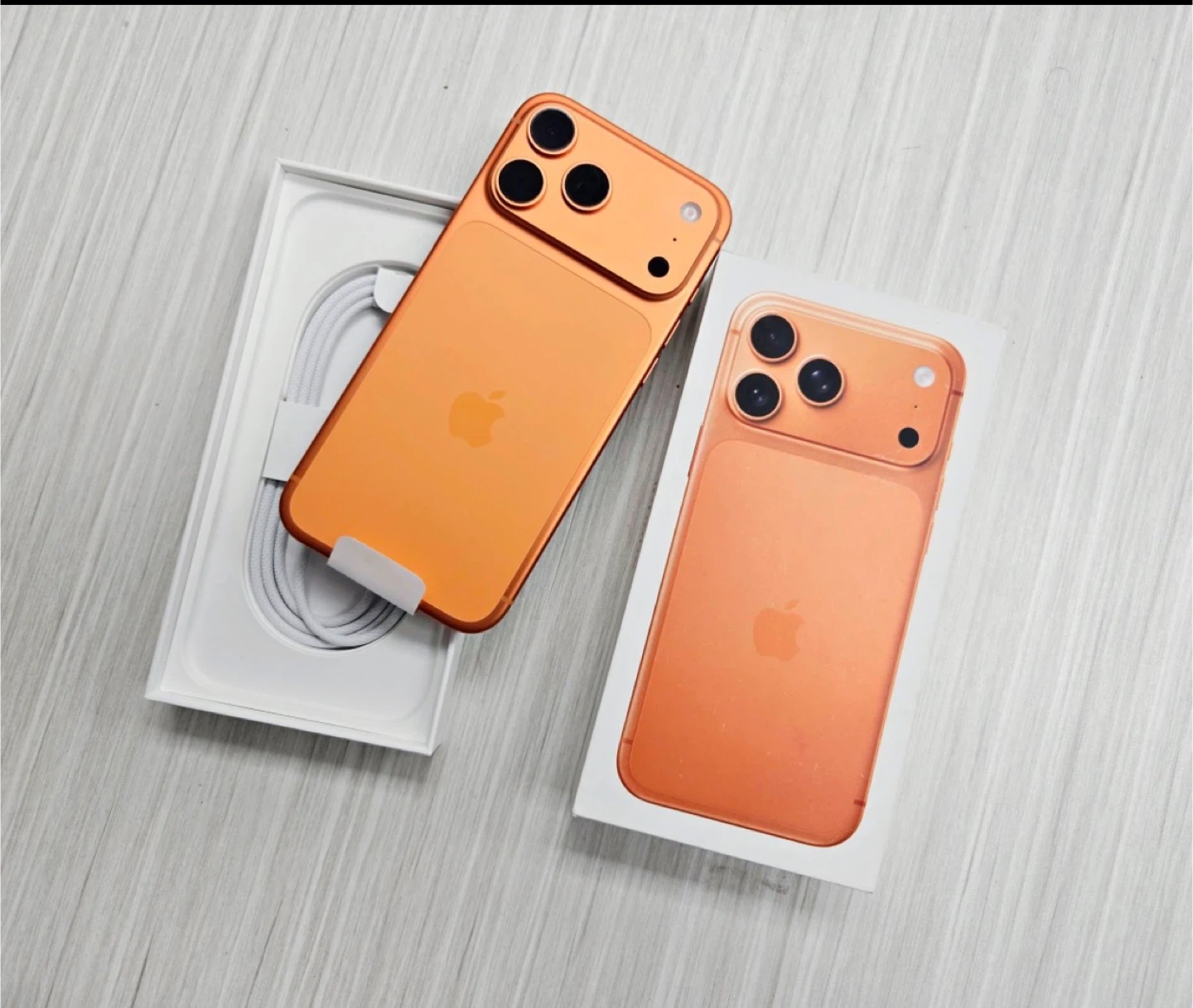 It's an Apple iPhone 17 Pro in Cosmic Orange. It comes with 256GB of storage and includes the original box and charging cable. This phone was purchased on September 26, 2025.