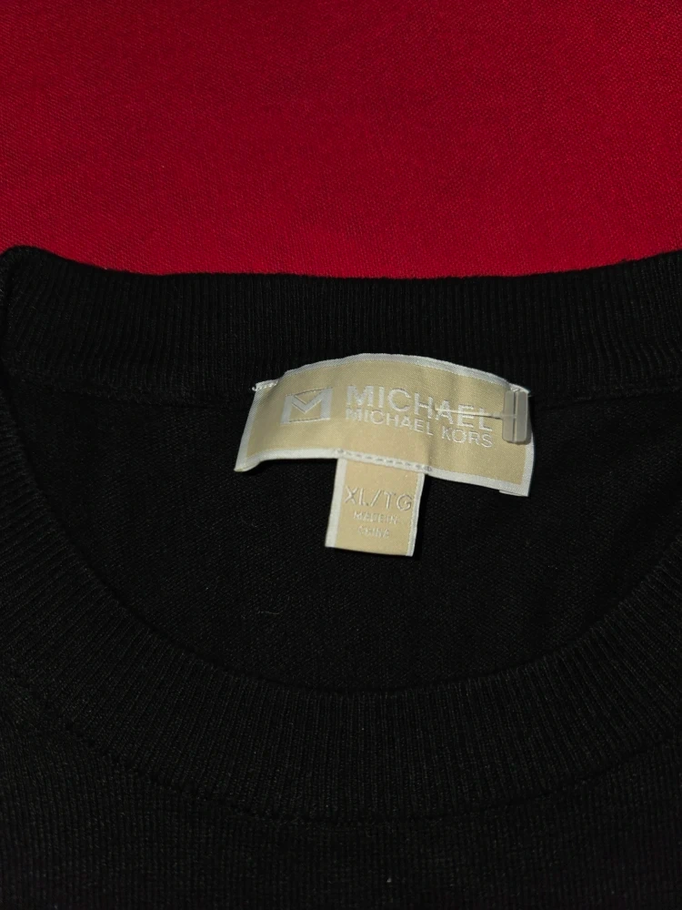 Selling a Michael Kors black sweater in size XL. It has the MK logo on the front. Fits more of a Large