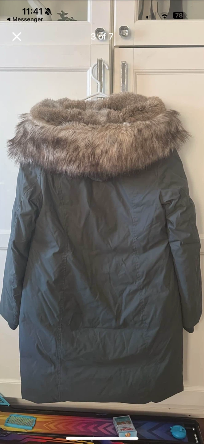 Selling a Babaton St. Moritz Parka in size M. It's a mid-length down parka jacket with a faux fur trim on the hood. Great for the cold Canadian winters!