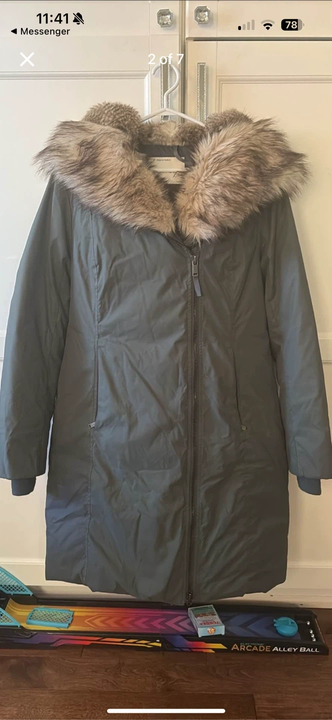 Selling a Babaton St. Moritz Parka in size M. It's a mid-length down parka jacket with a faux fur trim on the hood. Great for the cold Canadian winters!