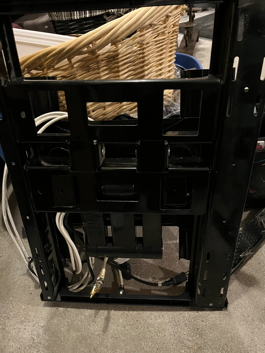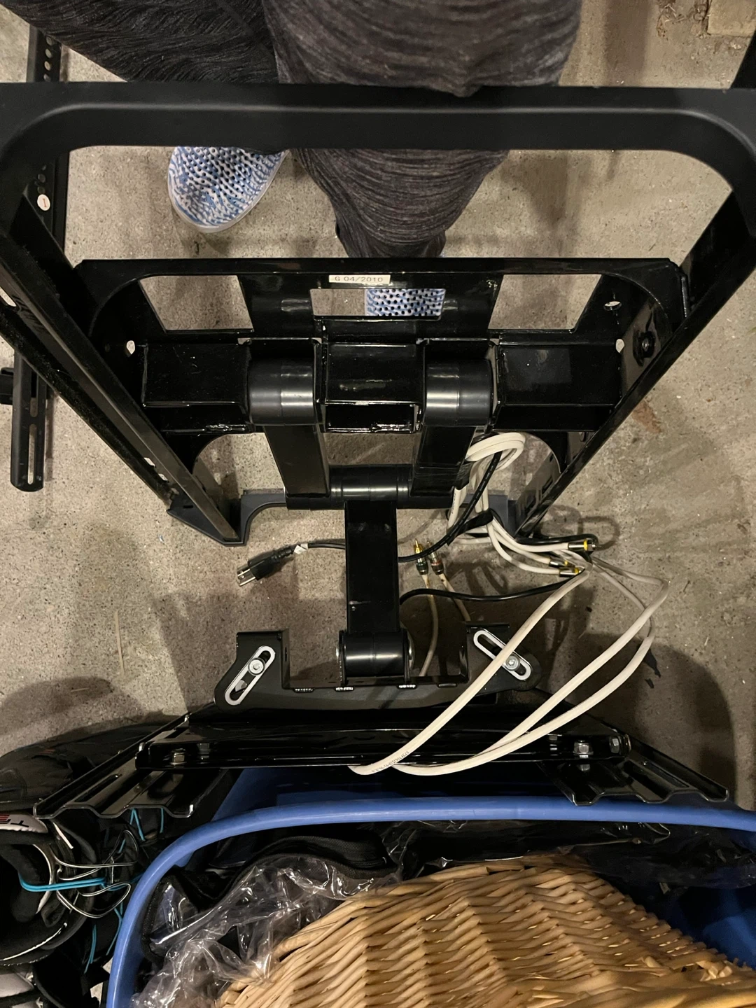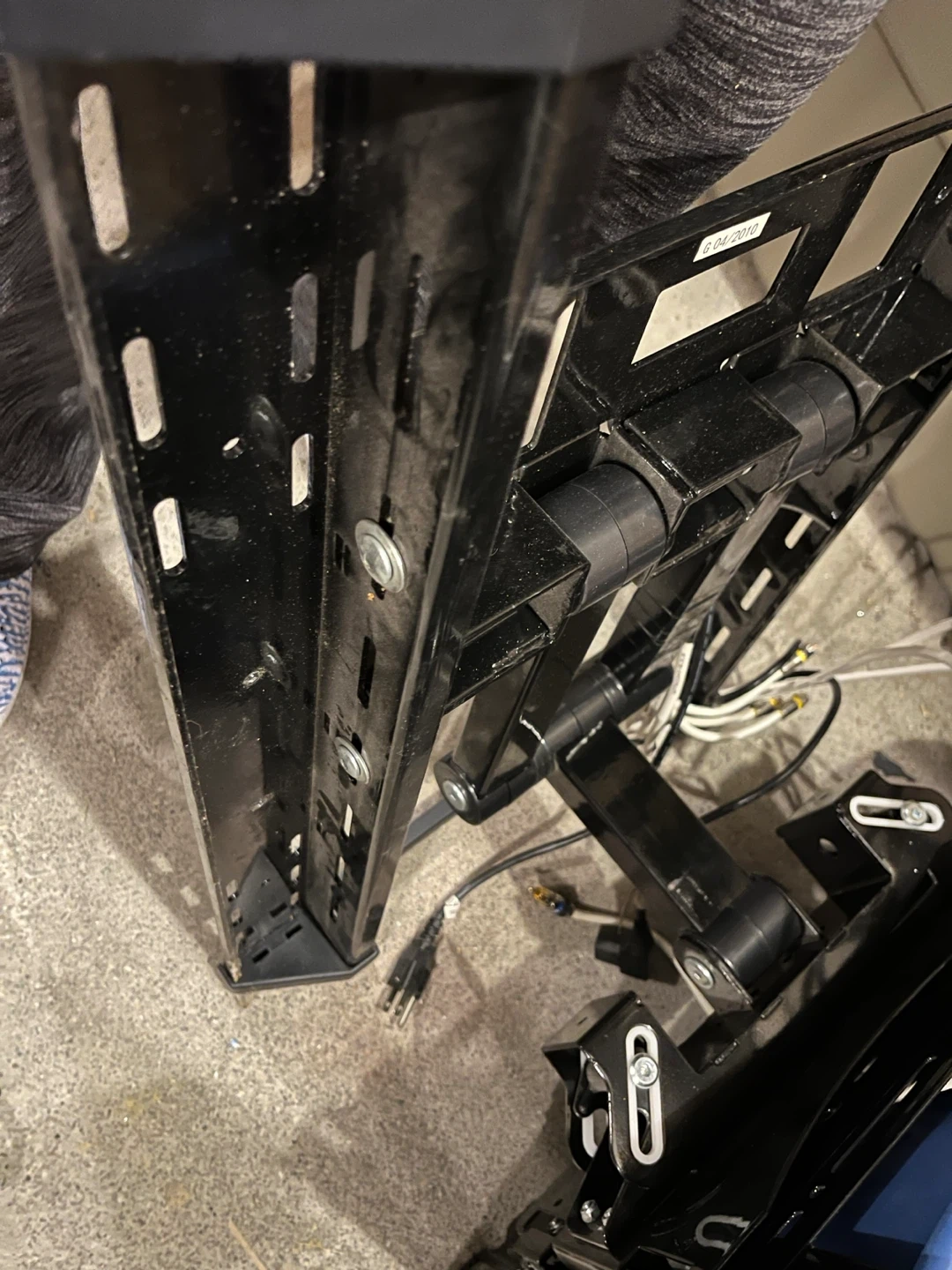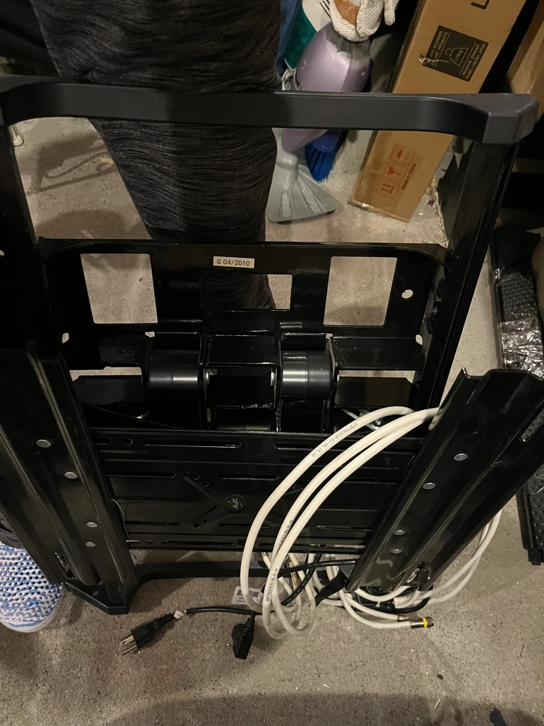 Selling an AVA TV wall mount in black. It appears to be in good condition and comes with the necessary cables for setup. Great for mounting your TV securely!