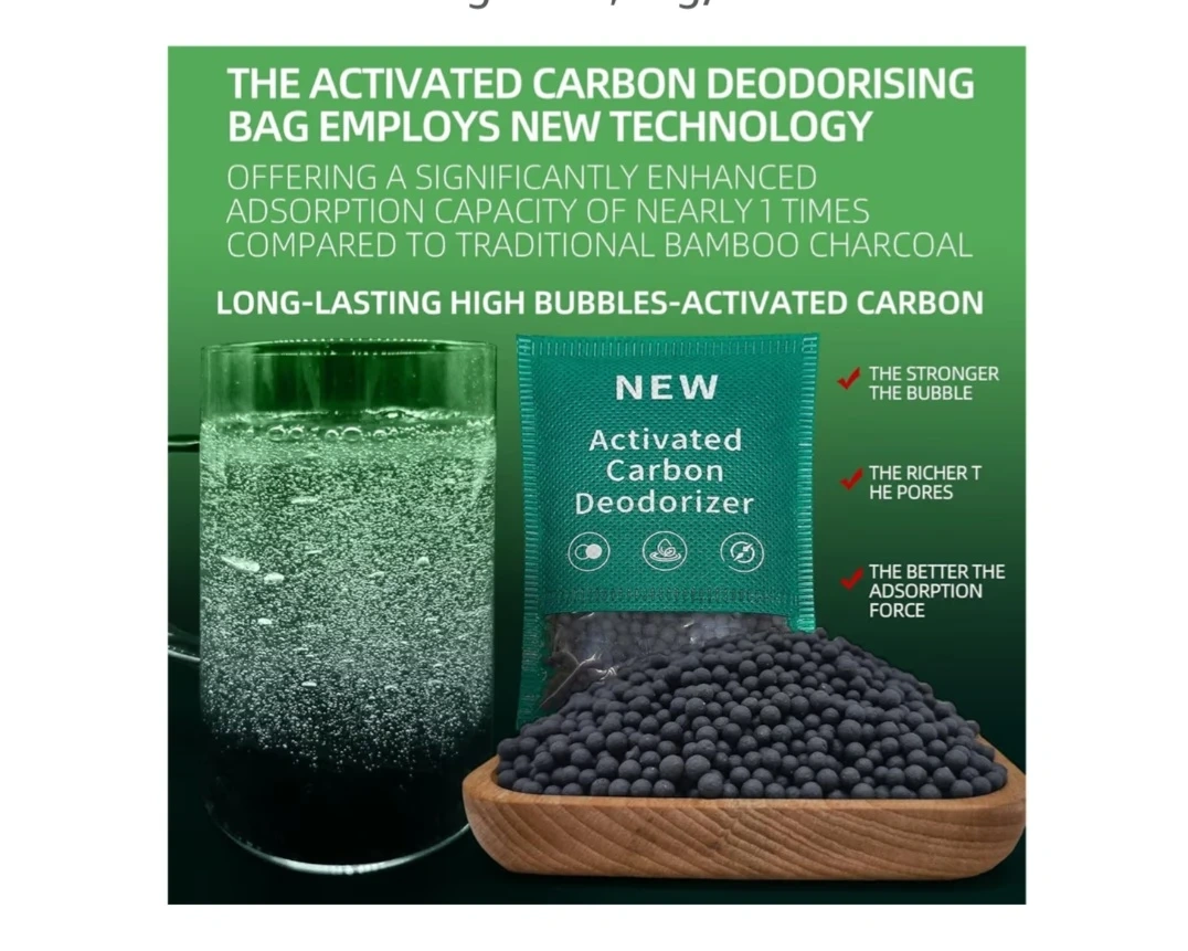 New type activated charcoal odor absorber:The activated charcoal bag employs new technology, offering a significantly enhanced adsorption capacity of nearly 1 times compared to traditional bamboo charcoal. It is a versatile solution suitable for various applications, including household, pet, automotive and general deodorising needs