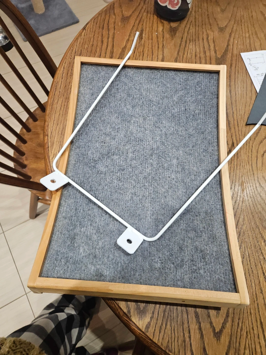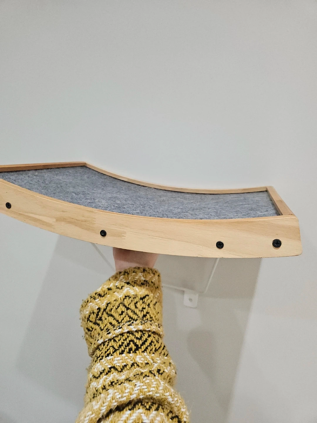 Wall-mounted shelf for a cat. You'll need your own hardware to mount it. Measures 16 by 11.5 inches.