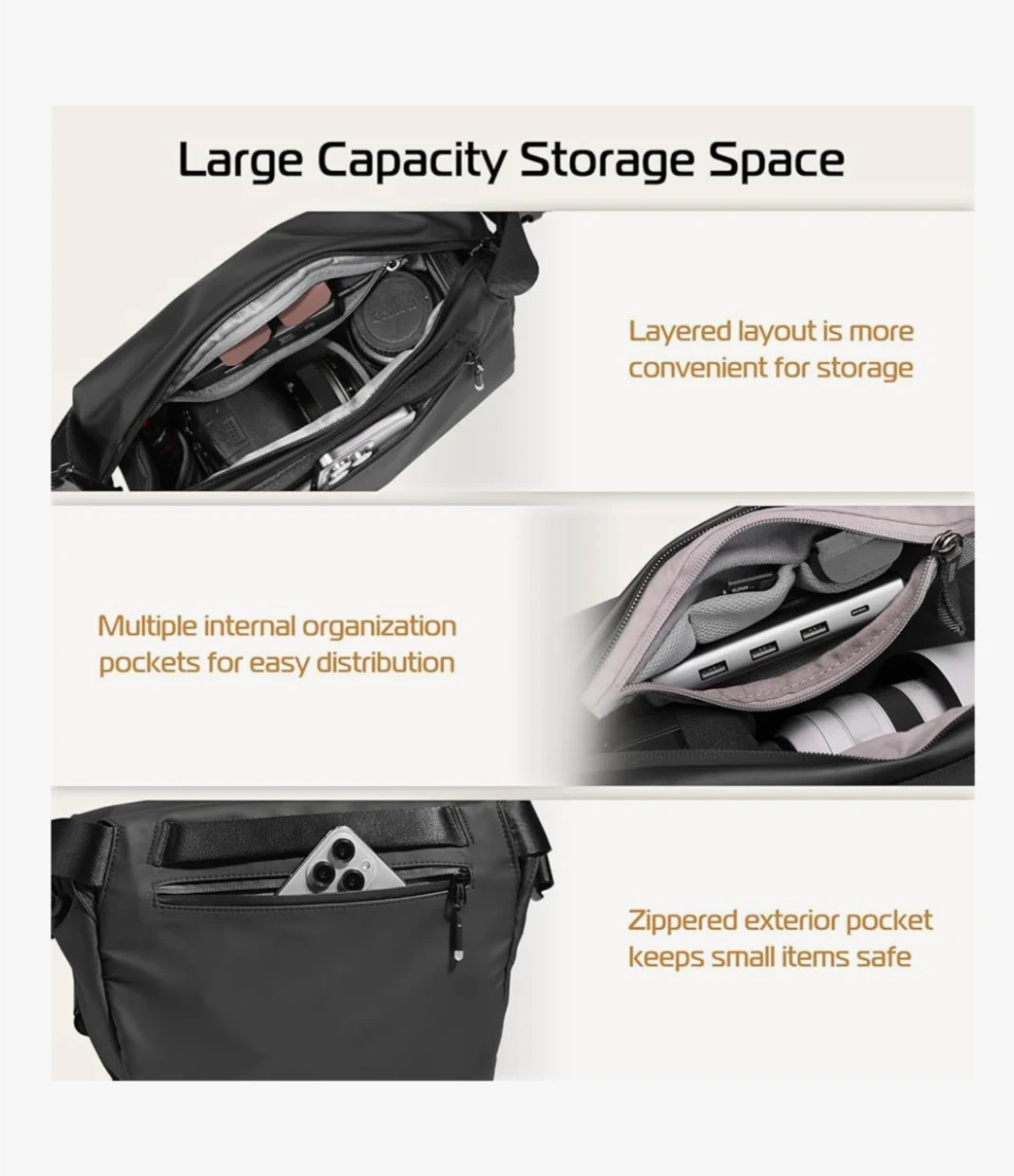 - The section decider inside can be rearranged or removed through velcro