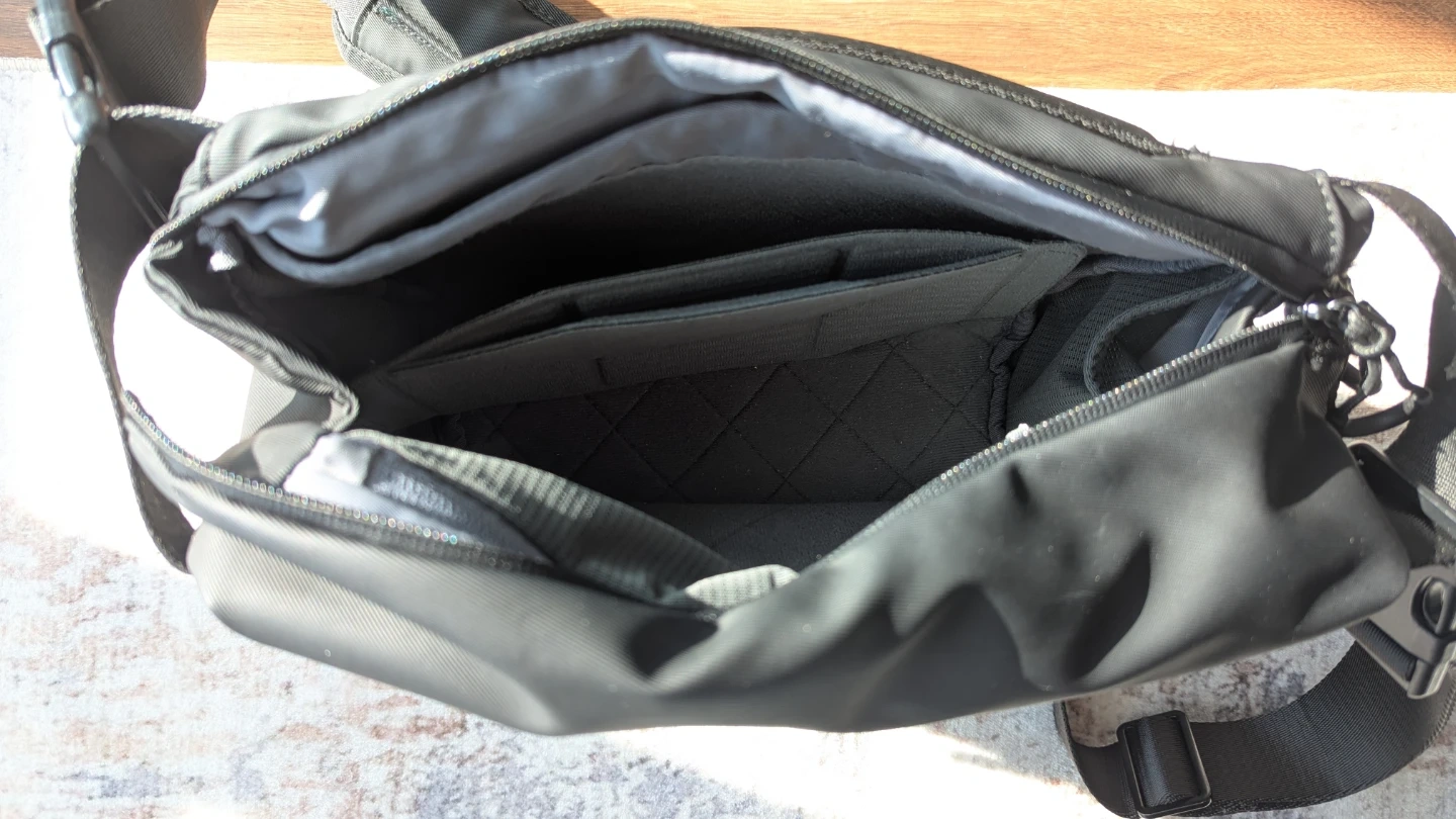 - It has multiple internal pockets and zippered exterior pockets.