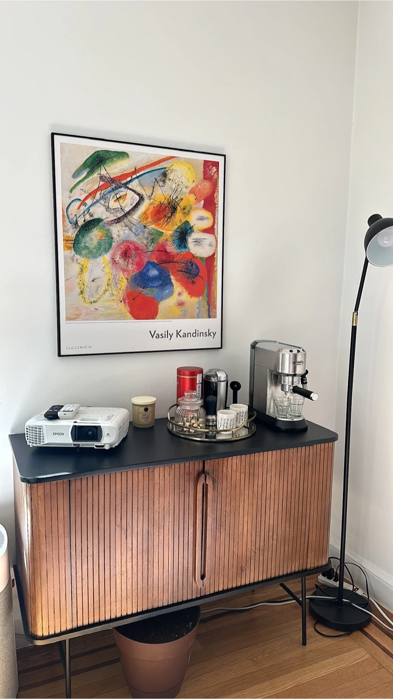 Beautiful framed art print of “Black Lines” by Wassily Kandinsky, a colorful abstract masterpiece that adds a modern and artistic touch to any space. Official Guggenheim print with sleek black frame by @allertonnyc