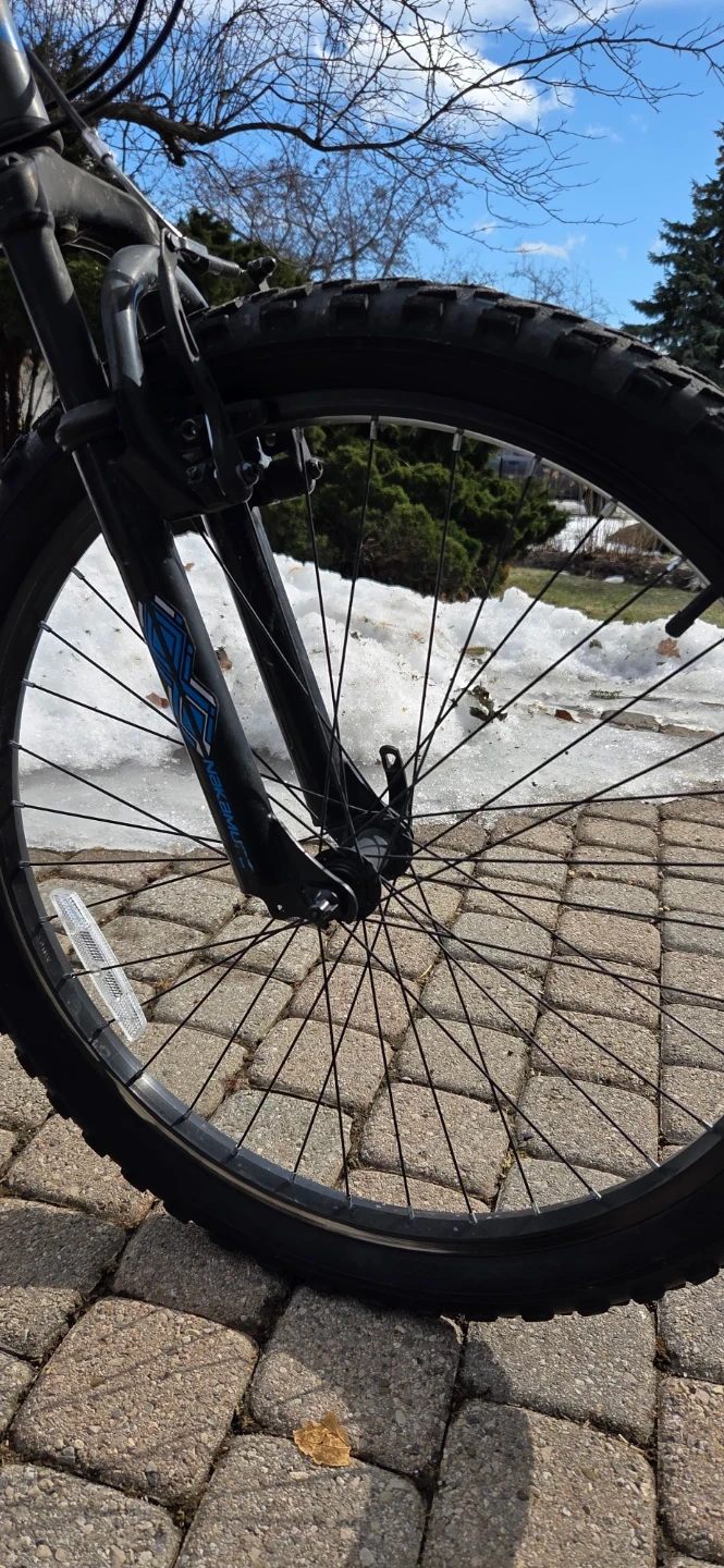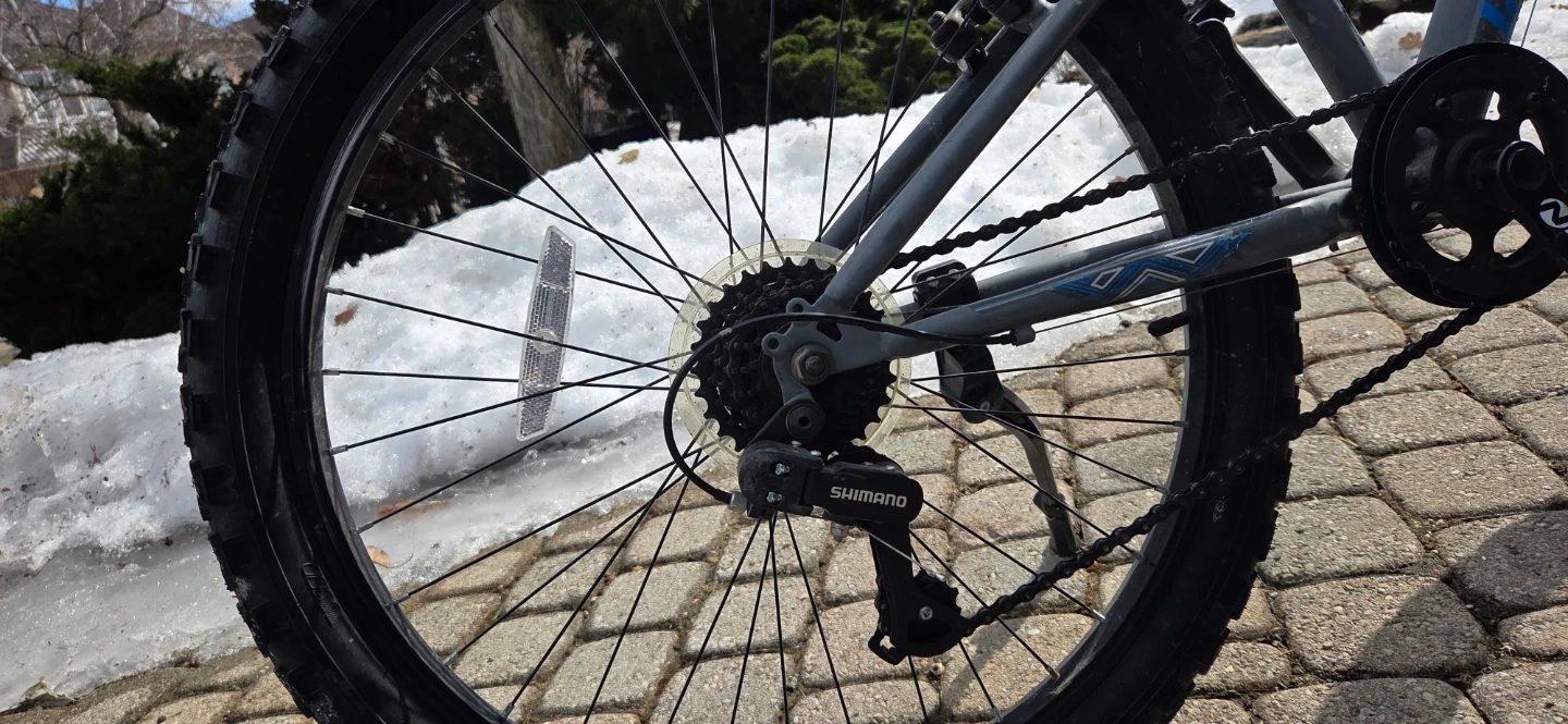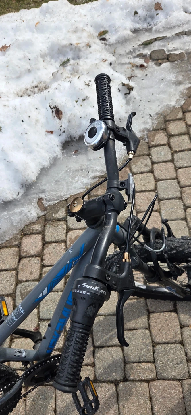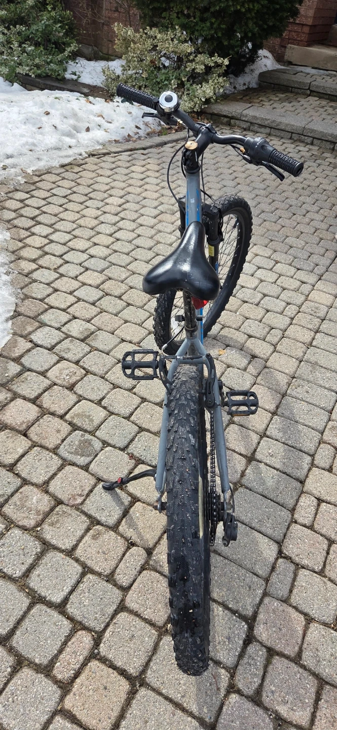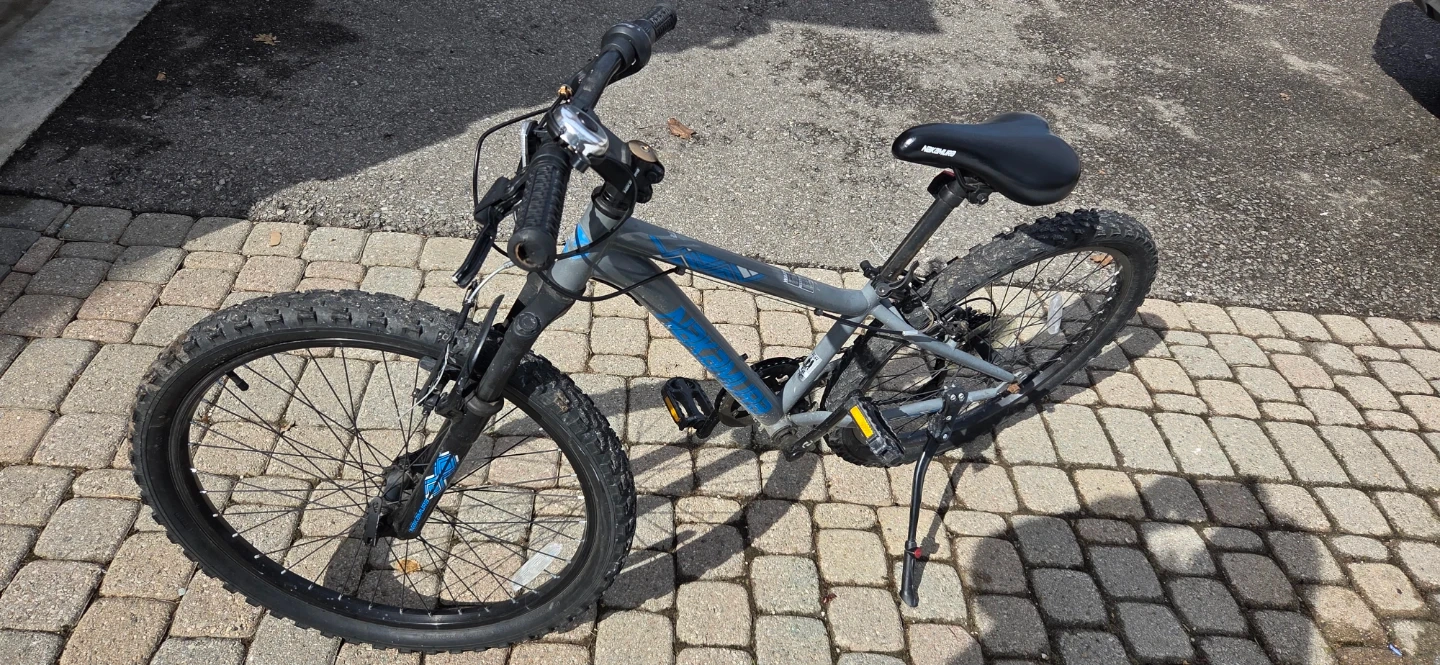 Grey and blue NAKAMURA kids mountain bike with a 24-inch wheel size. It's designed for ages 9-11 or heights between 54-62 inches.