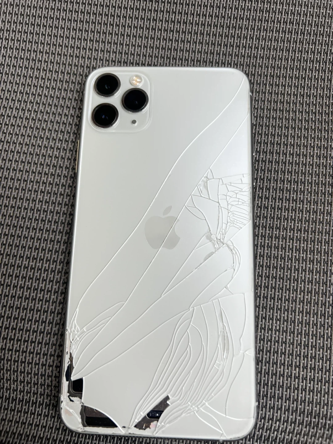 This is an Apple iPhone 11 Pro in Silver. The back glass is significantly cracked. It's being sold as is. GB256 battery life 76